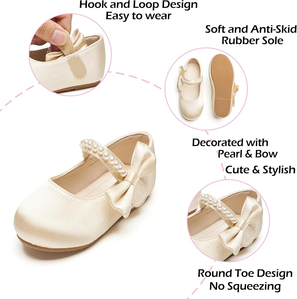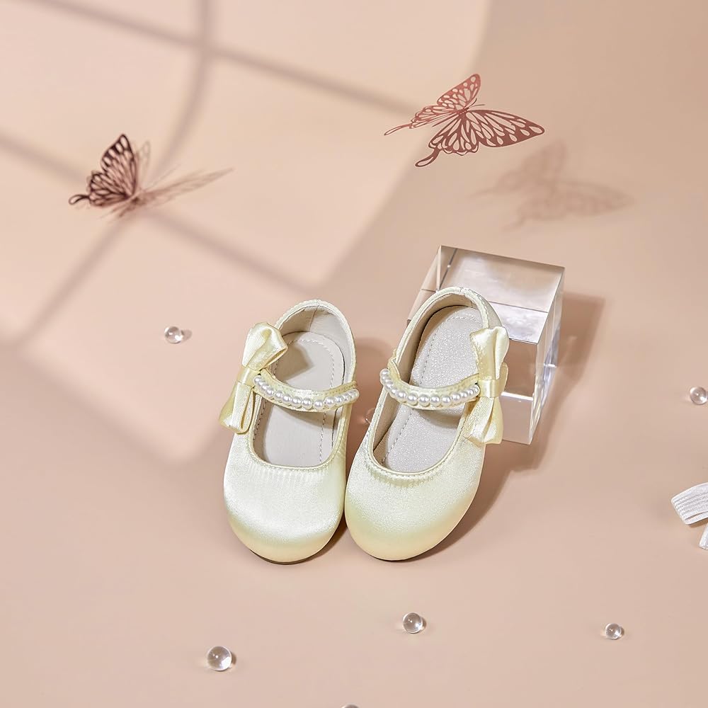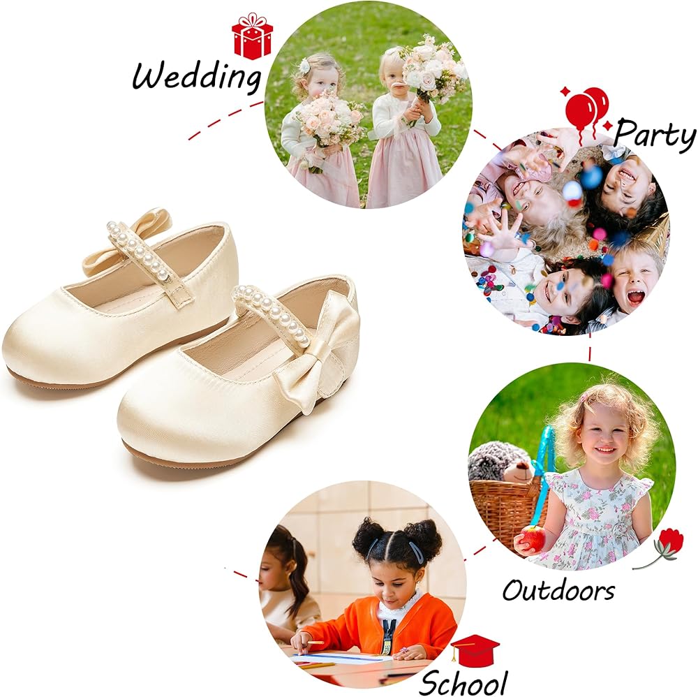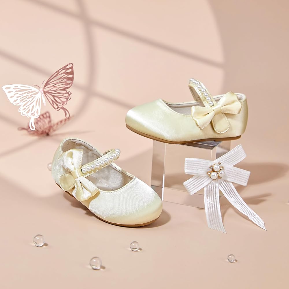 VERSATILE FASHION ITEM:Design with elegent pearl and sweet bow on the side, flower girl shoes go well with all kinds of dresses, suitable for parties, weddings, school performances, graduation, or leisure daily wear