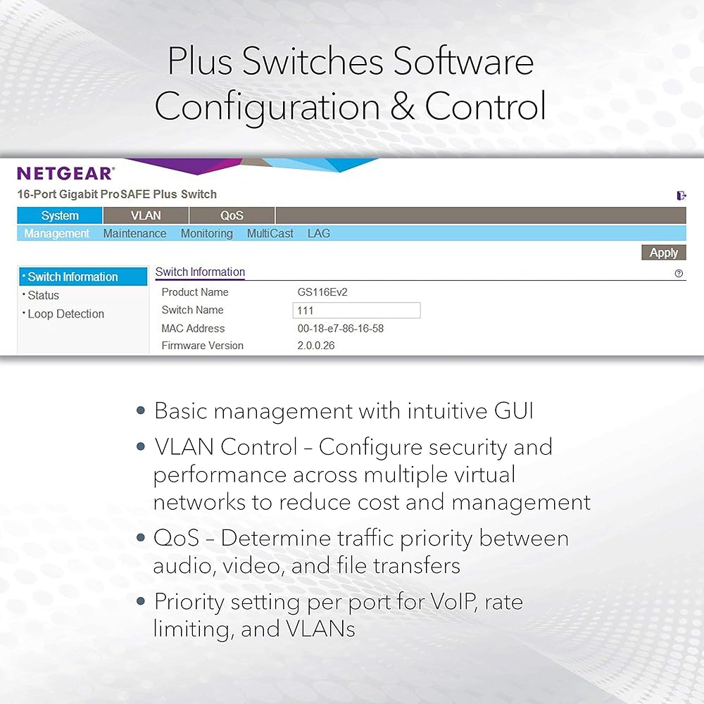 Plug in your Ethernet cables and connect a power cord, and you're ready to go. There is no software to install or settings to configure. The switch features auto-sensing ports which automatically obtains the fastest possible connection. There are no toggle switches or special crossover cables. The switch will honor priority tags at both the Layer 2 and Layer 3 level if you have your network set to support jumbo frames.