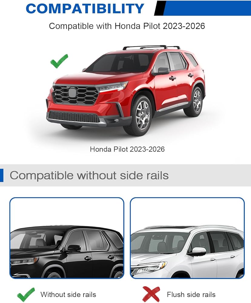 【Compatibility】Compatible with Honda Pilot LX & EX-L2023 2024 2025 without side rails.This roof rack cross bars is designed specifically for your vehicle, better than the universal ones.
