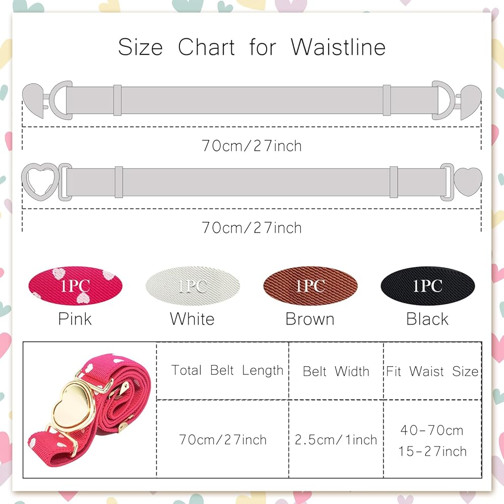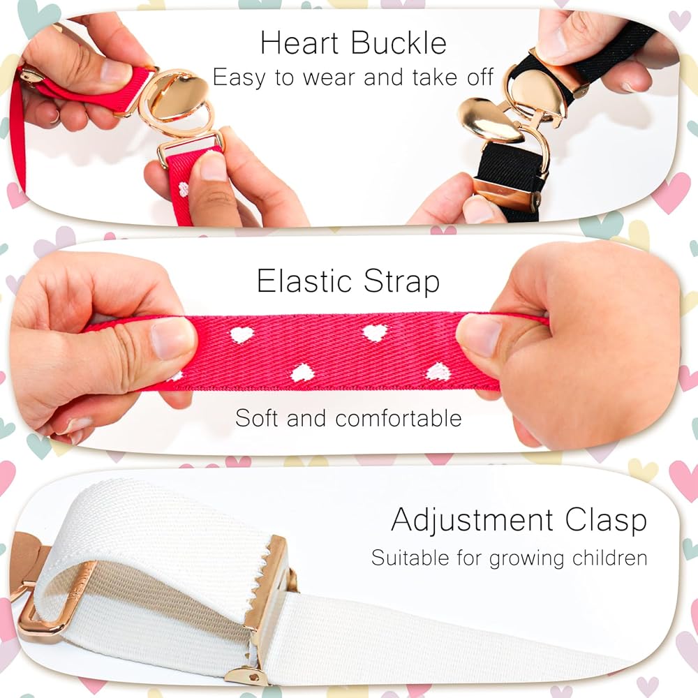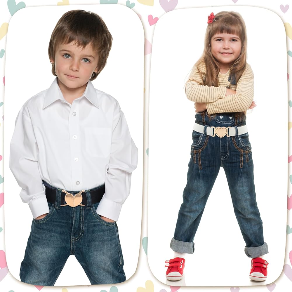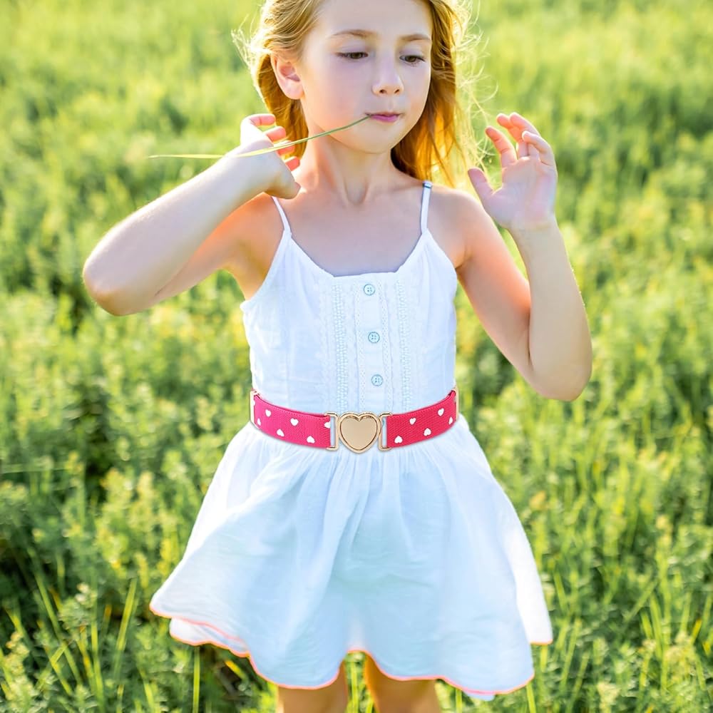 Elastic Belt for Girls Boys, Adjustable Heart Buckle Stretch Toddler Belts