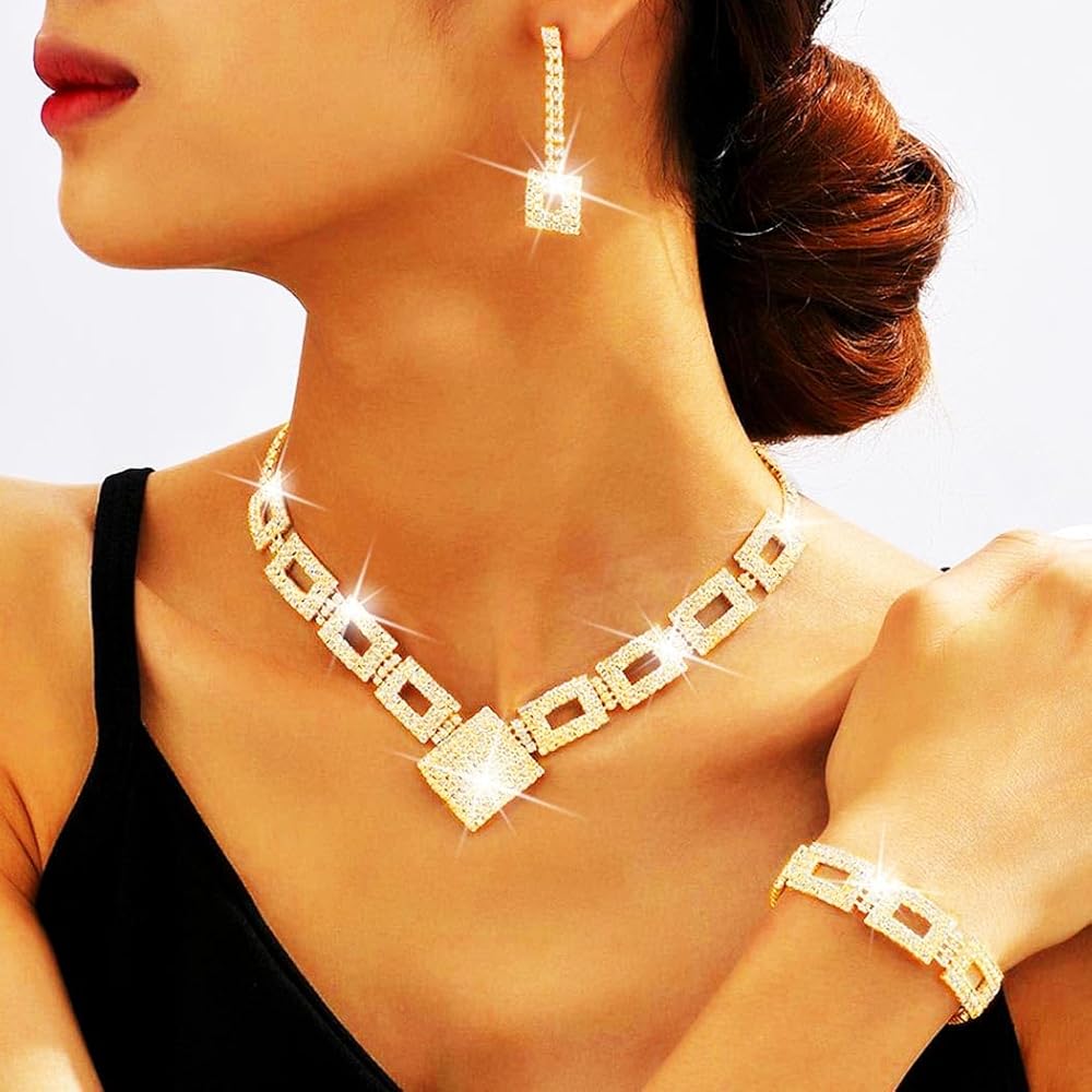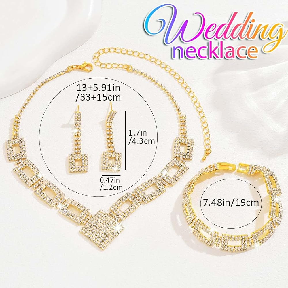 - Bridal jewelry set for wedding include 1 necklace, 1 pair of earrings and 1 bracelet. Delicate and beautiful, adjustable.