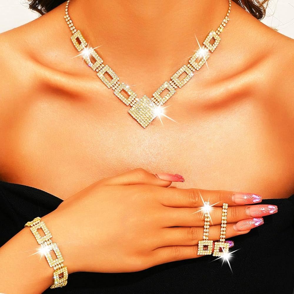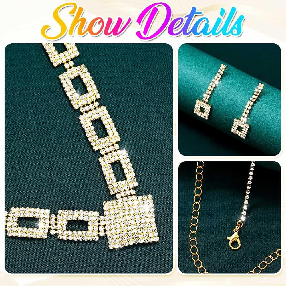 GORAIS Silver Wedding Jewelry Sets Rhinestone Necklace Bridal Costume Jewelry Set for Women and Brides