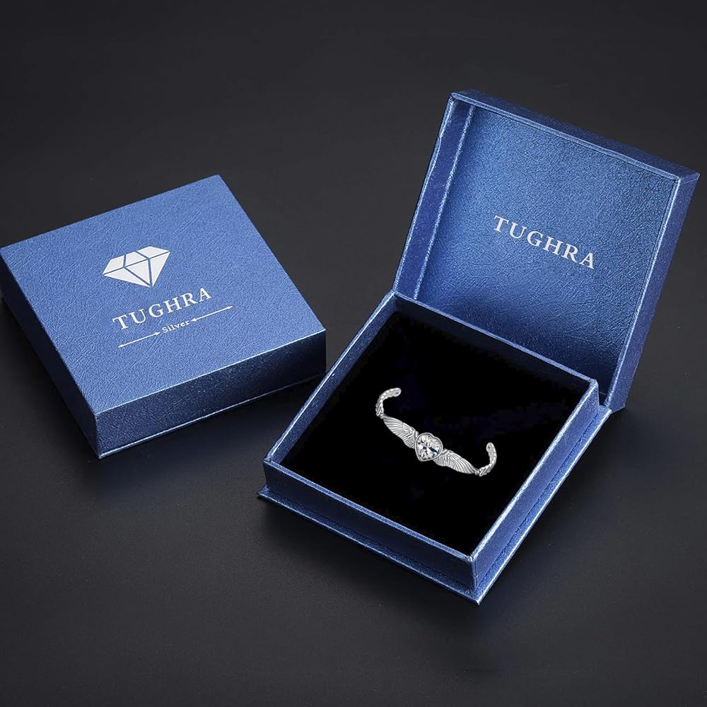 【REAL 925 Sterling Silver 】VINTAGE ANGEL WING BANGLE Made of 100% 925 sterling silver and simulated turquoise, lead-free, cadmium-free, and hypoallergenic, will not break or fade. The adjustable chain is fixed with a sterling silver lobster clasp, embellished with beautiful heart-shaped symbols, which are truly eye-catching. This Bangle is simple and versatile, with details reflecting quality and style, giving men or women a distinctive taste