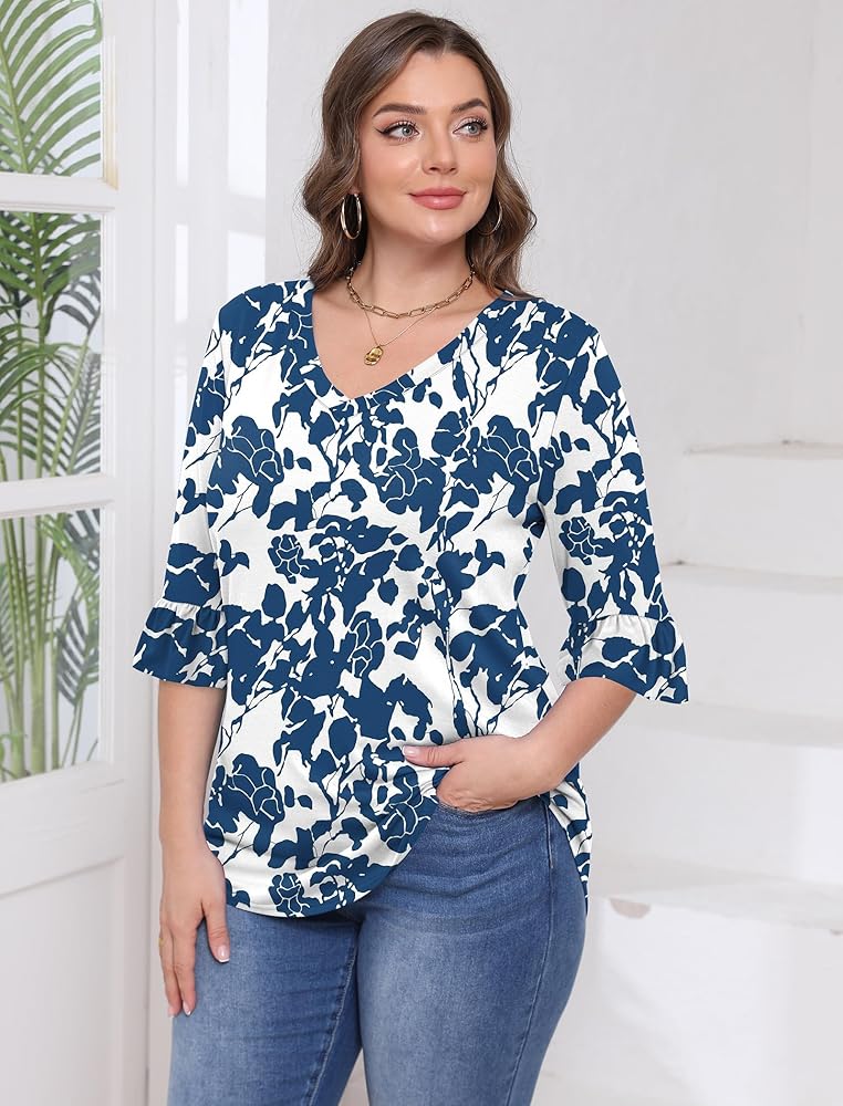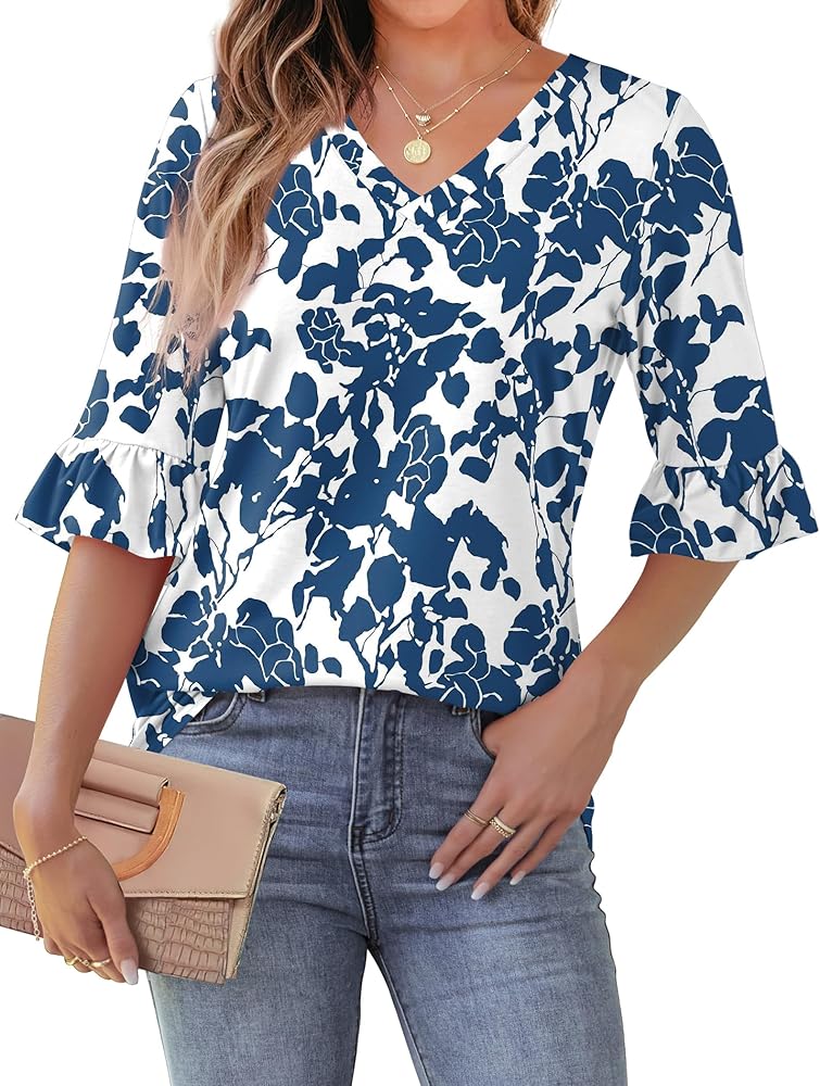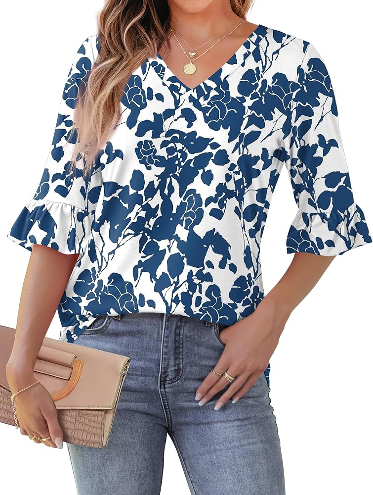 ✦3/4 Length Sleeves: Embracing the best of both worlds, a 3/4 sleeve top strikes that perfect balance between the coverage of long sleeves and the breeziness of short sleeves. Whether you're braving varying temperatures or tackling different occasions, these sleeves have literally got you covered. The bell sleeves design add more elegant feminine elements. Designed with a waist-slimming curved hem, they offer effortless elegance suitable for various body shapes and ages.