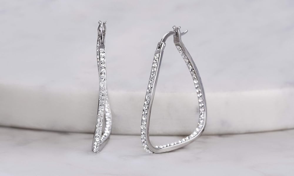 Hoop Earrings: This women's crystal studded Hoop Earrings gives you an elegant flair with a graceful and timeless style, and make a chic addition to your jewelry box; Hoop Earrings complete any look; A modern take on a classic style, earrings that pair with everything; Perfect earrings for formal occasions or casual, everyday wear