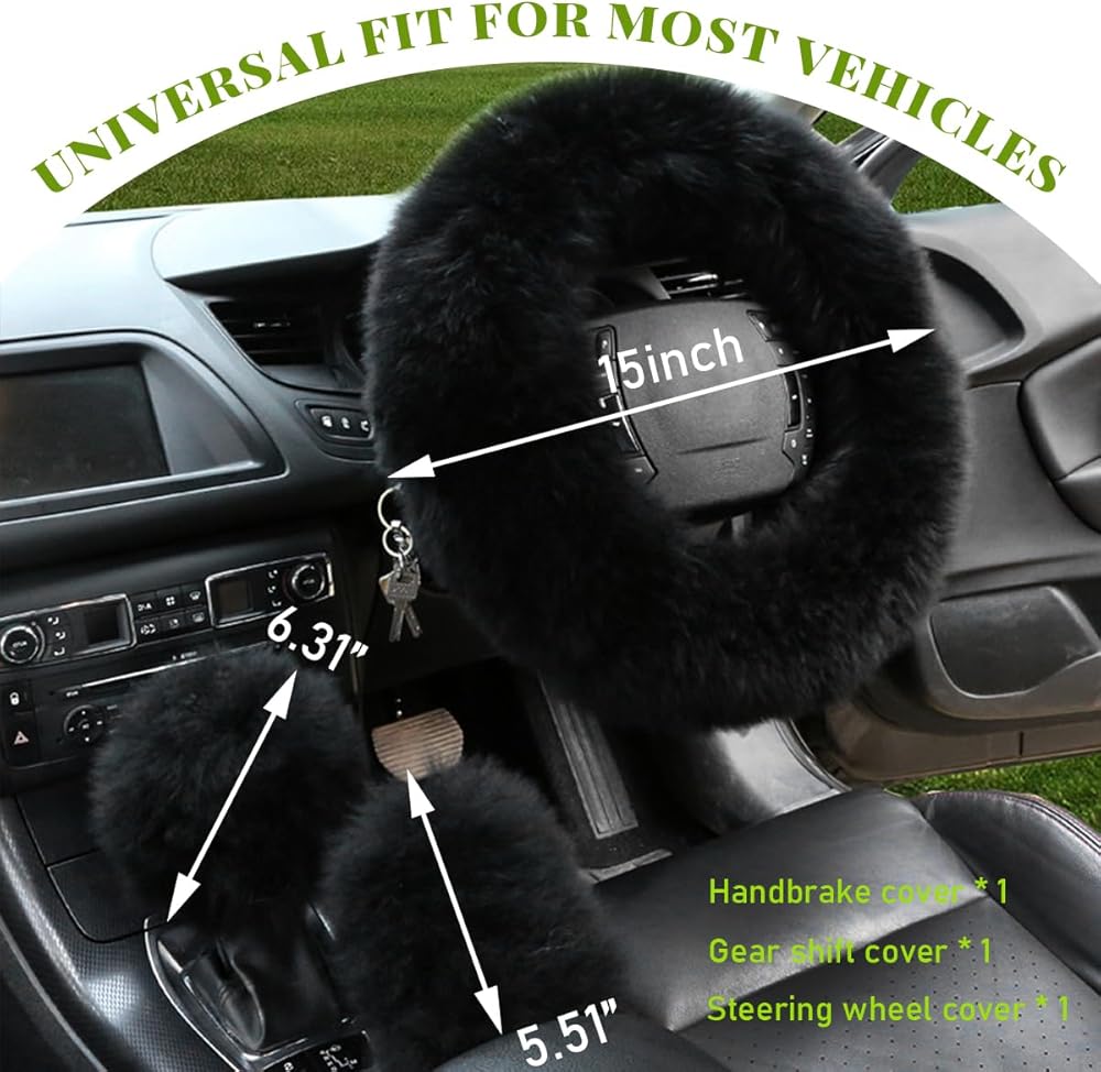 Package Includes: Steering Wheel Cover, Gearshift Cover, Handbrake Cover