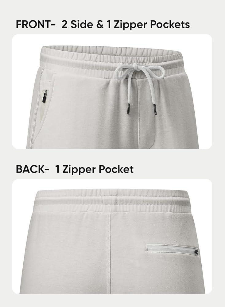 Feature - Regular fit men's sweatshorts ideal for athletic activities. Elastic waistband with adjustable drawstring for perfect fit. Durably sewn hold up well for repeated washing. Two big side pockets & one zipper pocket, convenient and safe to put your phone, keys or wallets during a workout.
