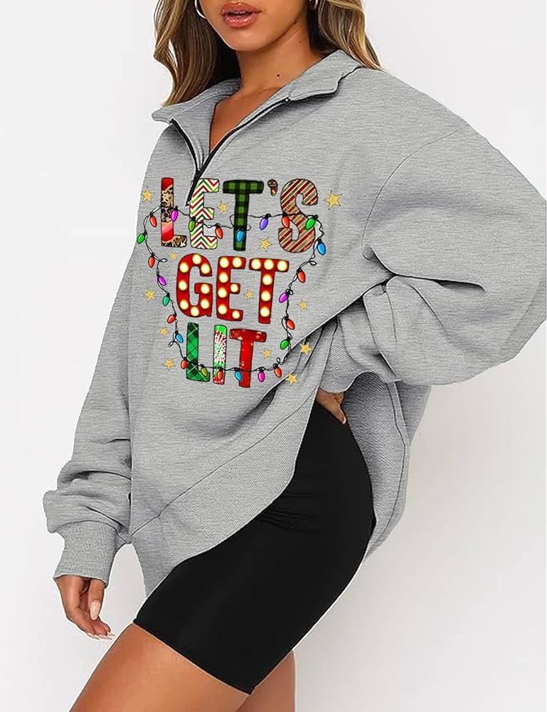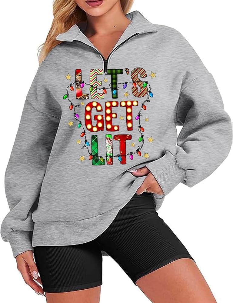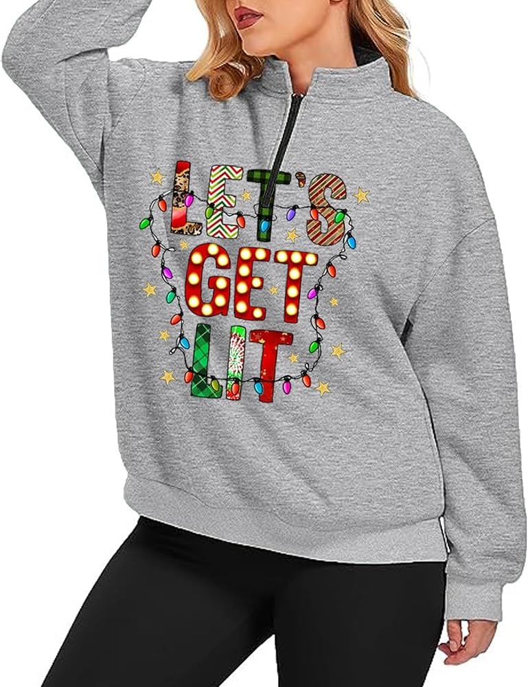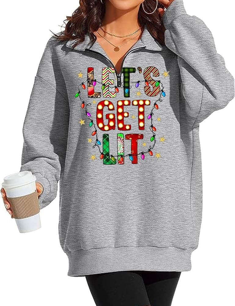 【Package Include】:1* Christmas Sweatshirts Women I'm Fine Everything is Fine Sweatshirt Light Long Sleeve Pullover Half Zip Xmas Tee Top