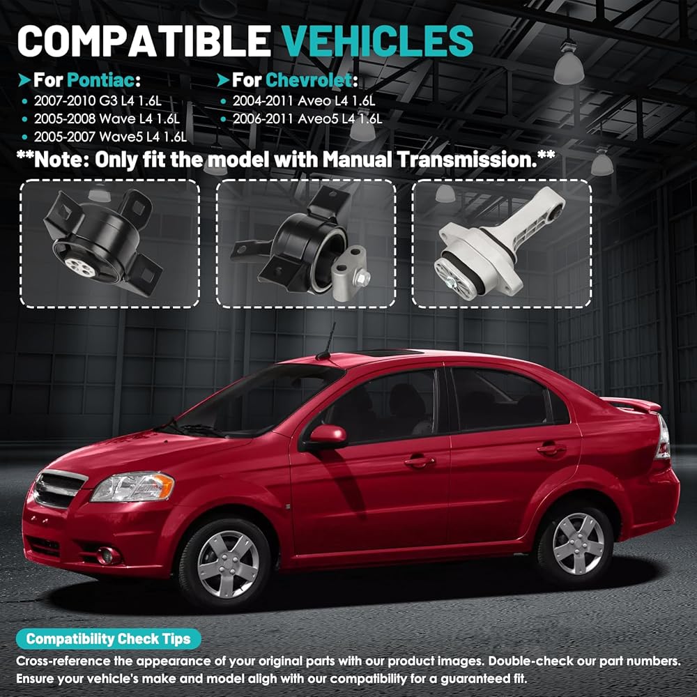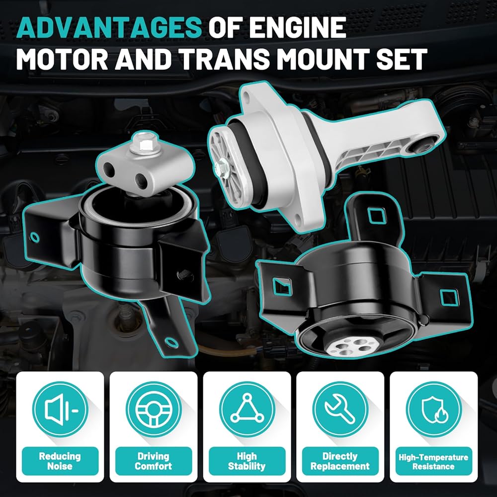 ✅【Improved Stability】Engine motor mount & transmission mount set ensure precise alignment of the engine and transmission within the car chassis, contributing to enhanced stability and control during acceleration, braking and cornering. Engine motor trans mount set helps maintain proper alignment and prevent excessive movement, thereby reducing vibrations and enhancing overall driving smoothness. It improves car handling and comfort while protecting surrounding components from unnecessary wear.