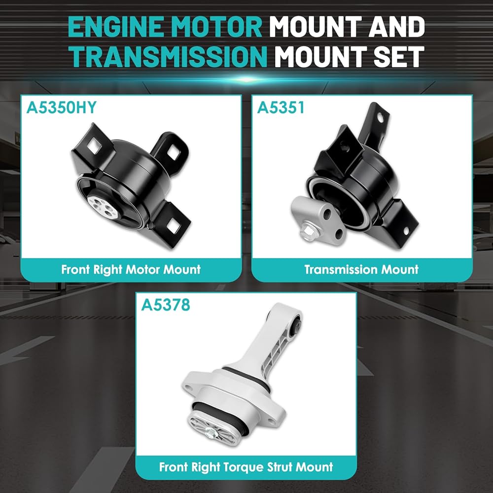 ✅【What You Get】With your purchase, you'll receive Engine Motor and Trans Mount Set of 4, and friendly customer support from our professional team. Buy with confidence and enjoy worry-free driving! Package Included: 1 x A42020 Front Motor Mount | 1 x A42024 Front Right Motor Mount | 1 x A42027 Rear Motor Mount | 1 x A42026 Left Transmission Mount. Offering a comprehensive solution for replacing worn-out or damaged mounts in a vehicle's powertrain system.