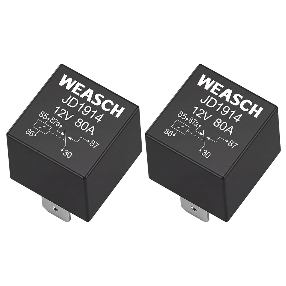 2 Pack JD1914 Car Relay, 12V 80A, 5 Pin SPDT, Automotive Switches and Starters, Waterproof Relay for Boat Tractor Truck Motorcycle (2)
