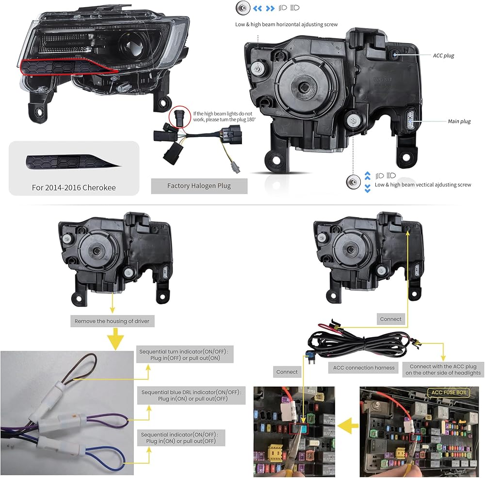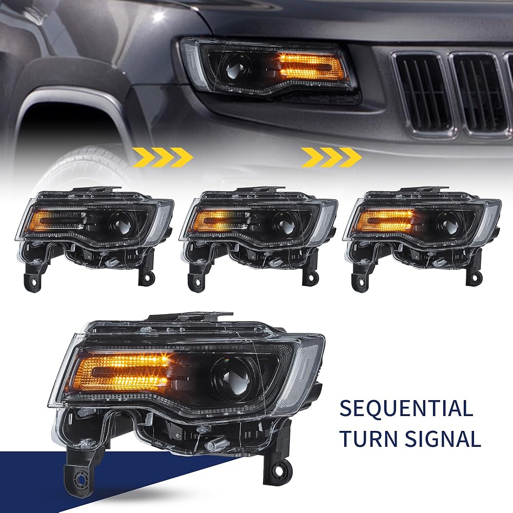 VLAND LED headlights For (Fourth Generation WK2) Jeep Grand Cherokee WK2 2014 2015 2016 2017 2018 2019 2020 2021. Factory Halogen and Xenon / HID model both can fit.