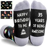 39TH BIRTHDAY GIFT IDEAS: These socks feature birthday gifts, hats, balloons, cakes and other elements on the top, while the bottom features a hilarious secret message written in non-slip ink: "HAPPY BIRTHDAY TO ME, 39 YEARS OF BEING AWESOME." They are suitable for any holiday gifts, such as Birthday gifts, Christmas gifts, or White Elephant gifts.