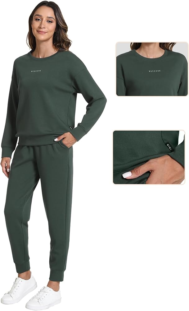 【Unbeatable Softness】 WiWi lounge tracksuit consists is made of 38.7% Viscose from Bamboo, 38.7% Cotton, 16.9% Polyester, and 5.7% Spandex. This two piece loungewear set is not see-through, soft and comfortable. Lightweight while keeping you warm in the fall and winter.