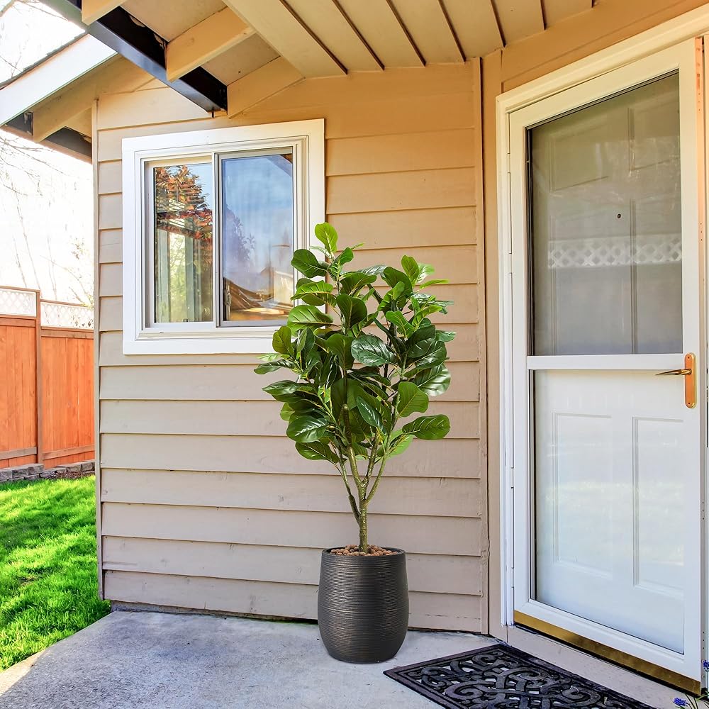 KOL Artificial 5 Feet Fiddle Leaf Fig Tree, 59 Inches Fake Ficus Lyrata Plant, Faux Plants Greenery for Home Office House Living Room, Perfect Housewarming Gift, Indoor Outdoor Modern Decor