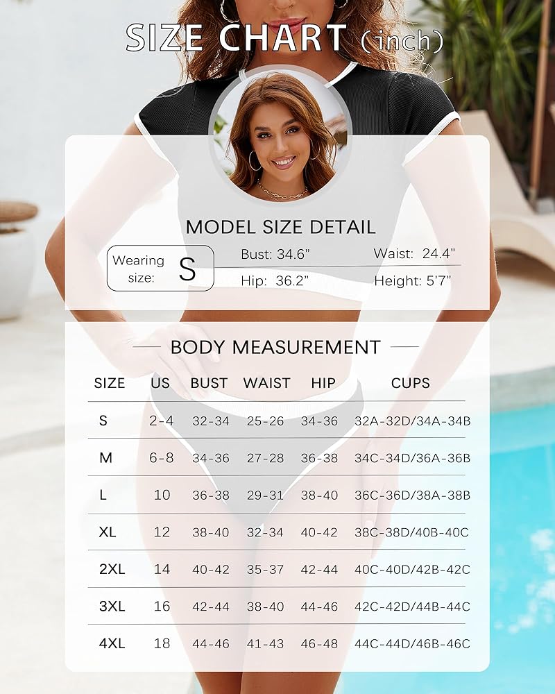 High Neck Short Sleeve Bikini Top--High neck swimsuit tops with full coverage bikini effect, perfect for large chest and teen girls. Short sleeve swimsuit women has crop top bikini detail, combine the fashion and style for girls bathing suit