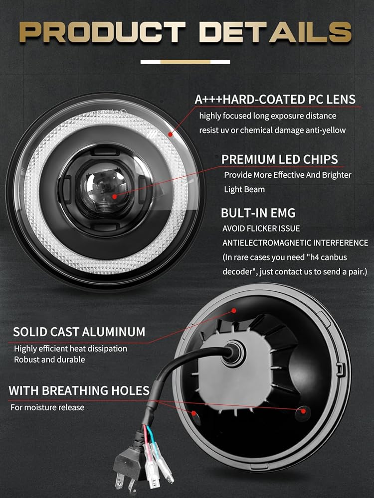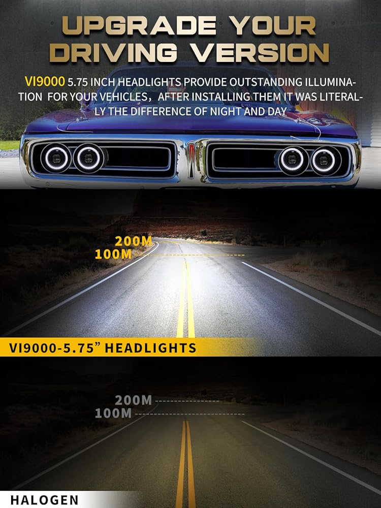 Upgrade Headlights- VI9000 5.75 inch led headlight has brighter light, no dim areas and no blind spots with 3000LM@low beam, 6500LM@high beam, 6000K color temperature, 80000+ hours lifespan, housed in a solid cast aluminum casing with an anti-UV PC lens