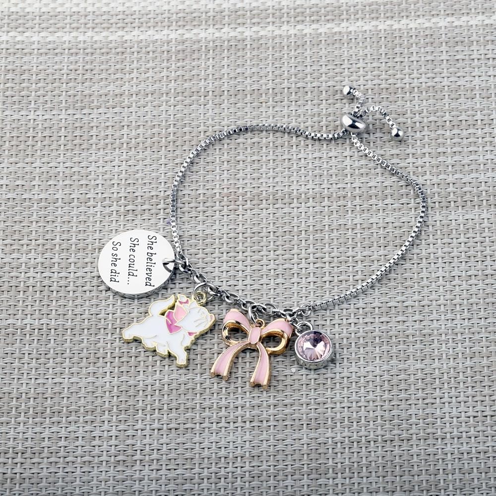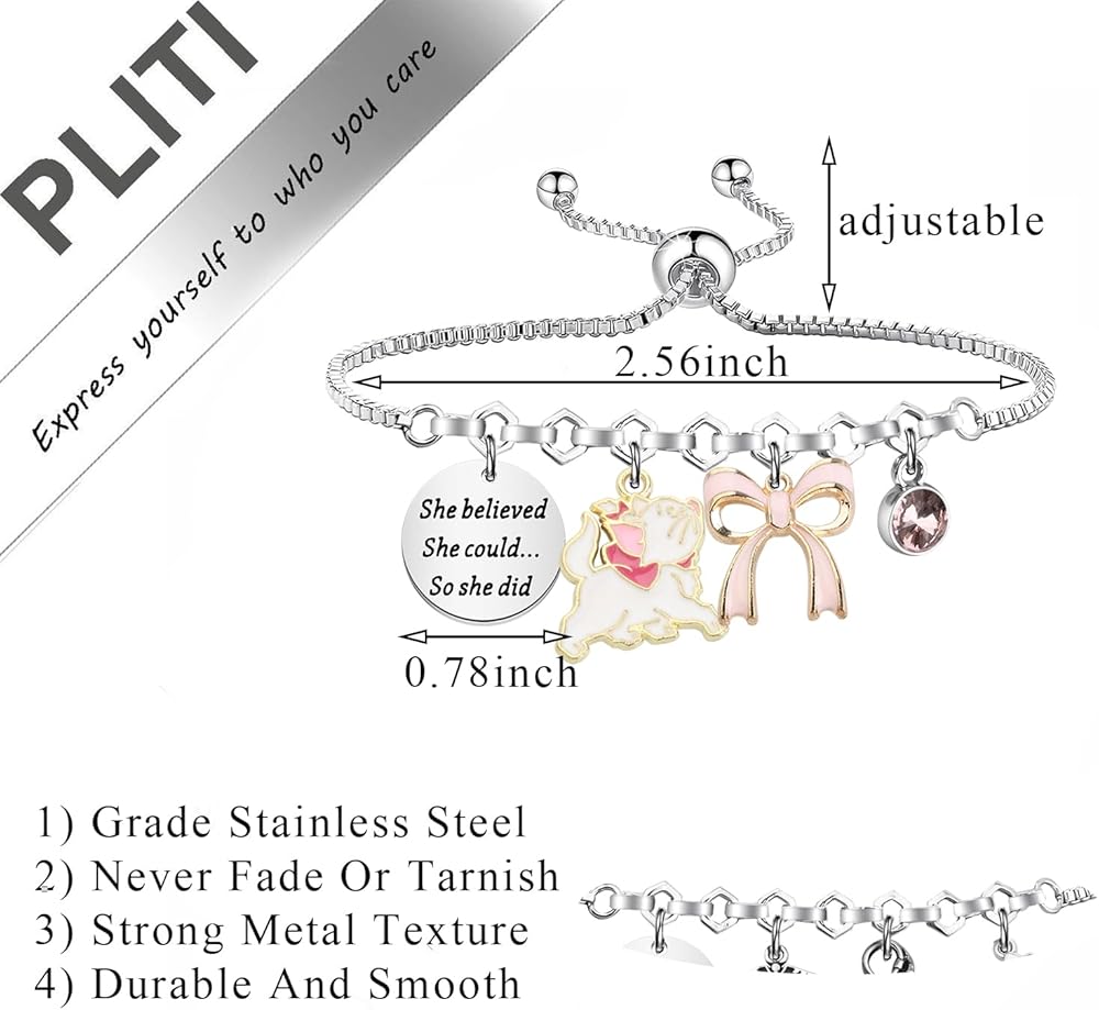 PLITI Cat Movie Inspired Gift Cartoon Cat Gift She Believed She Could So She Did Pink Cat Bracelet For Cats Lover