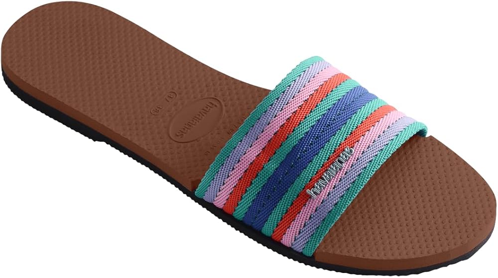 • "Slide Style: Cushioned footbed with textured rice pattern, rubber sole Made in Brazil"
