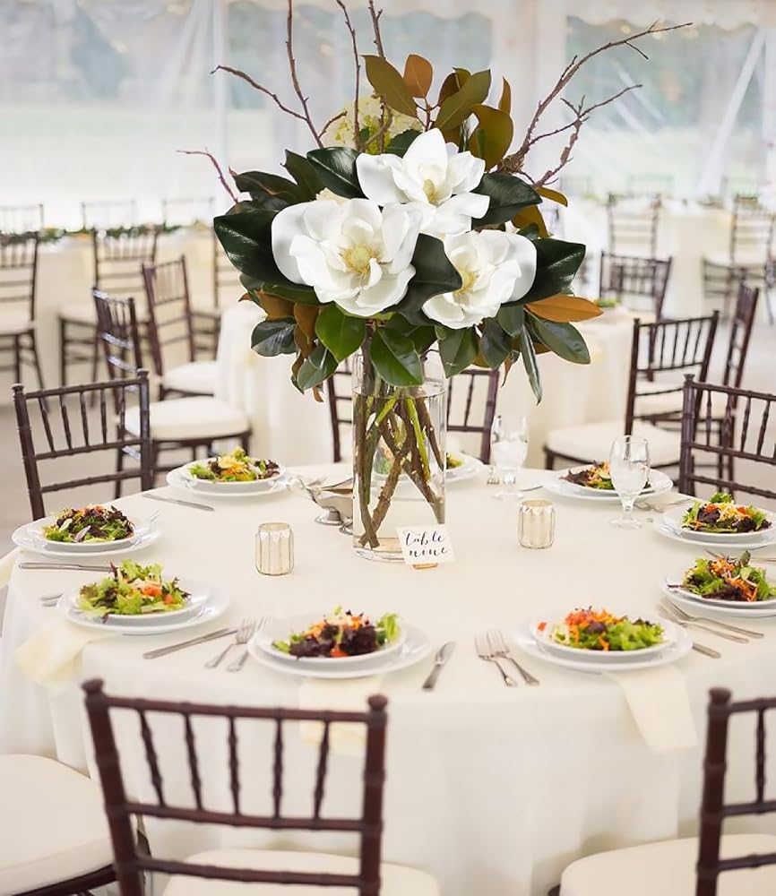 Wide Applications: White magnolia stem with Faux olive branches for vase match with other silk flowers with stems great for faux flowers decor indoor, flower centerpieces for bridesmaids bouquets, farmhouse floral arrangements, baby shower, dining table and wedding centerpieces, this combo is great bouquet fillers for making bouquets, centerpieces, or just for tall vase for home room table decor
