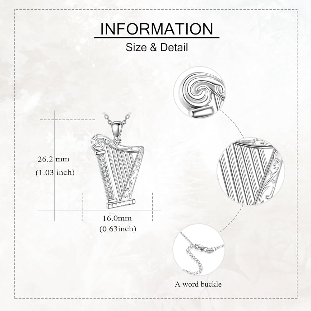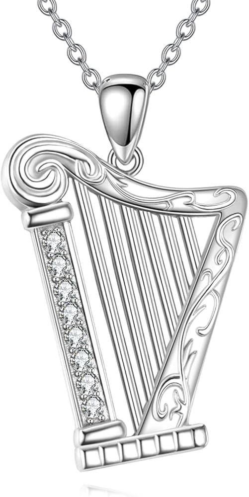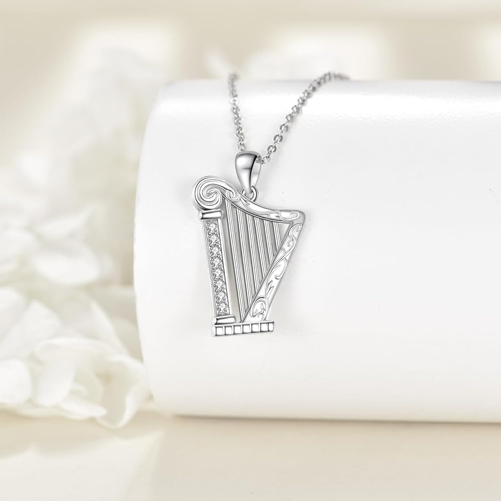 URONE Harp Necklace 925 Sterling Silver Harp Pendant Music Instrument Jewelry Gifts For Women