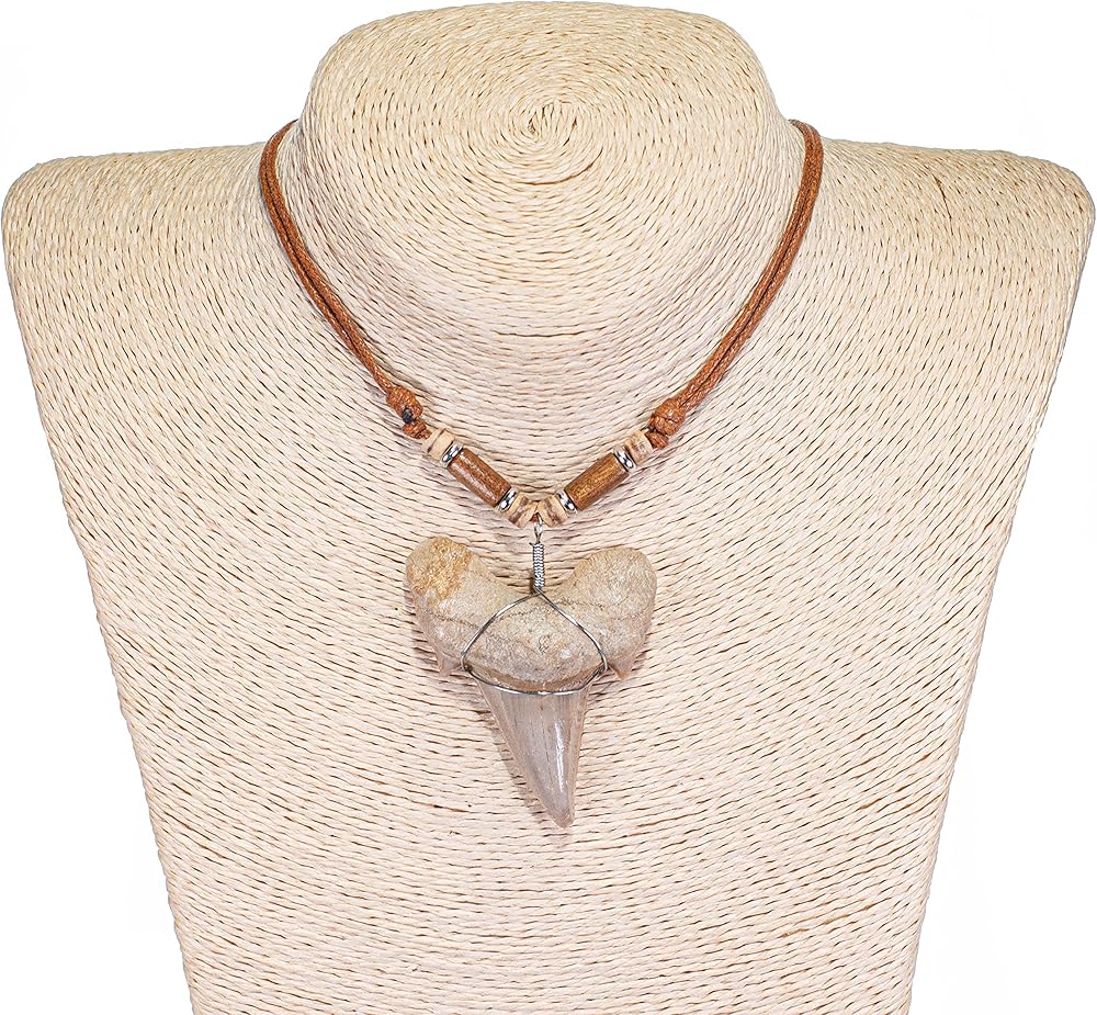 BlueRica Extra Large Shark Tooth Pendant on Adjustable Cord Necklace