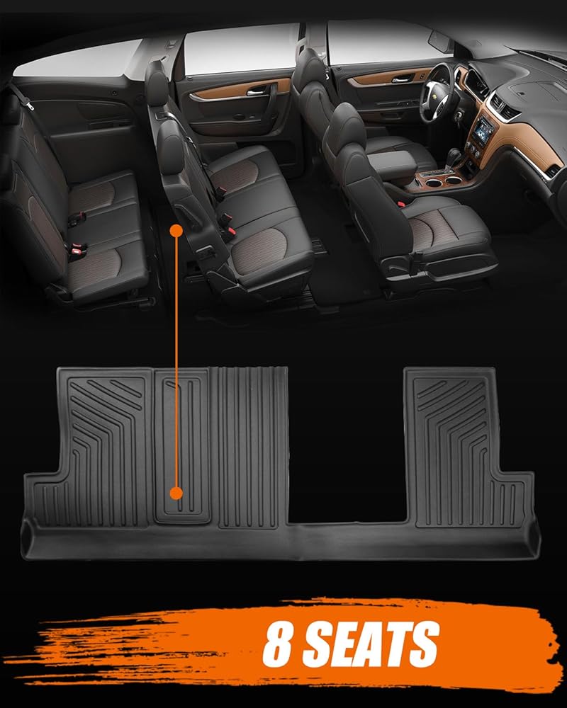 【Custom Floor Mats for Cars】Floor mats & cargo liner for Chevrolet Traverse 2018- 2023 ,include front and rear rows. Custom car floor mat use 3d laser scanning technology to precisely fit your vehicle's profile without trimming without leaving gaps.