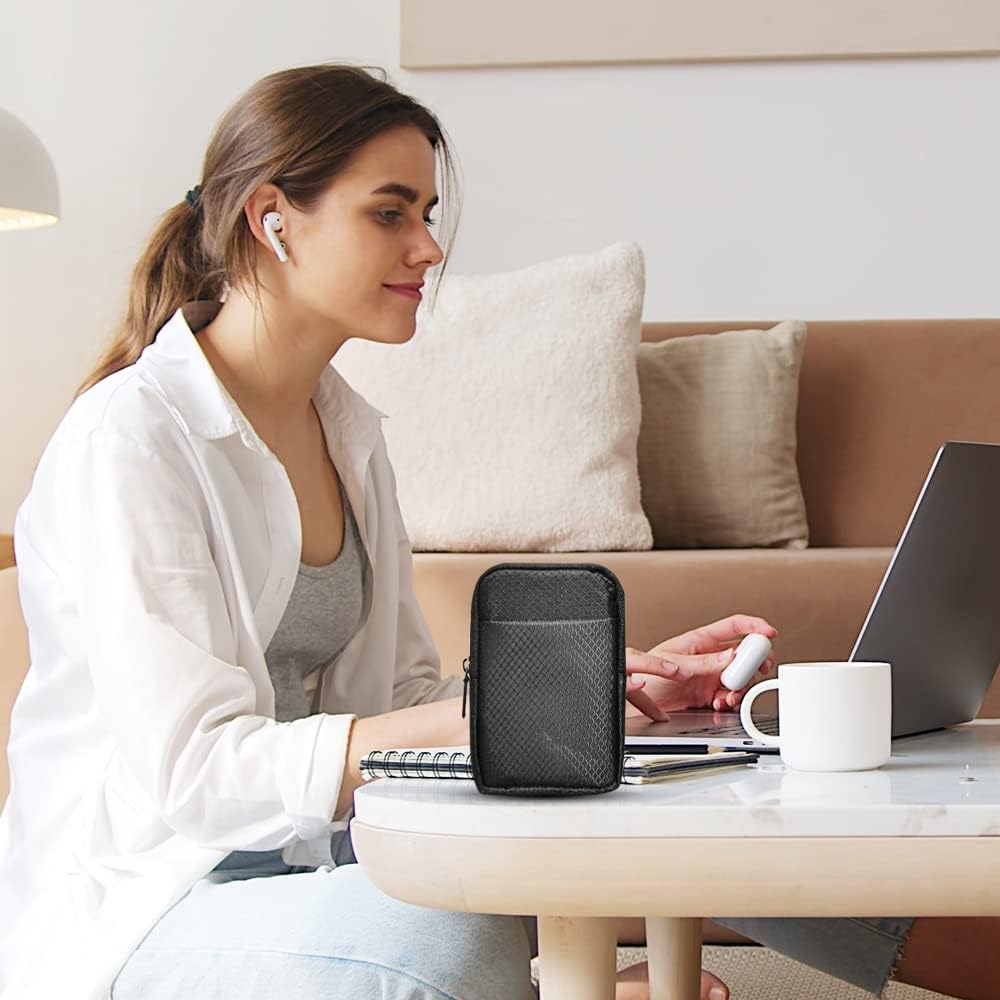 With its compact design and lightweight material, this hard drive bag is easy to carry around,