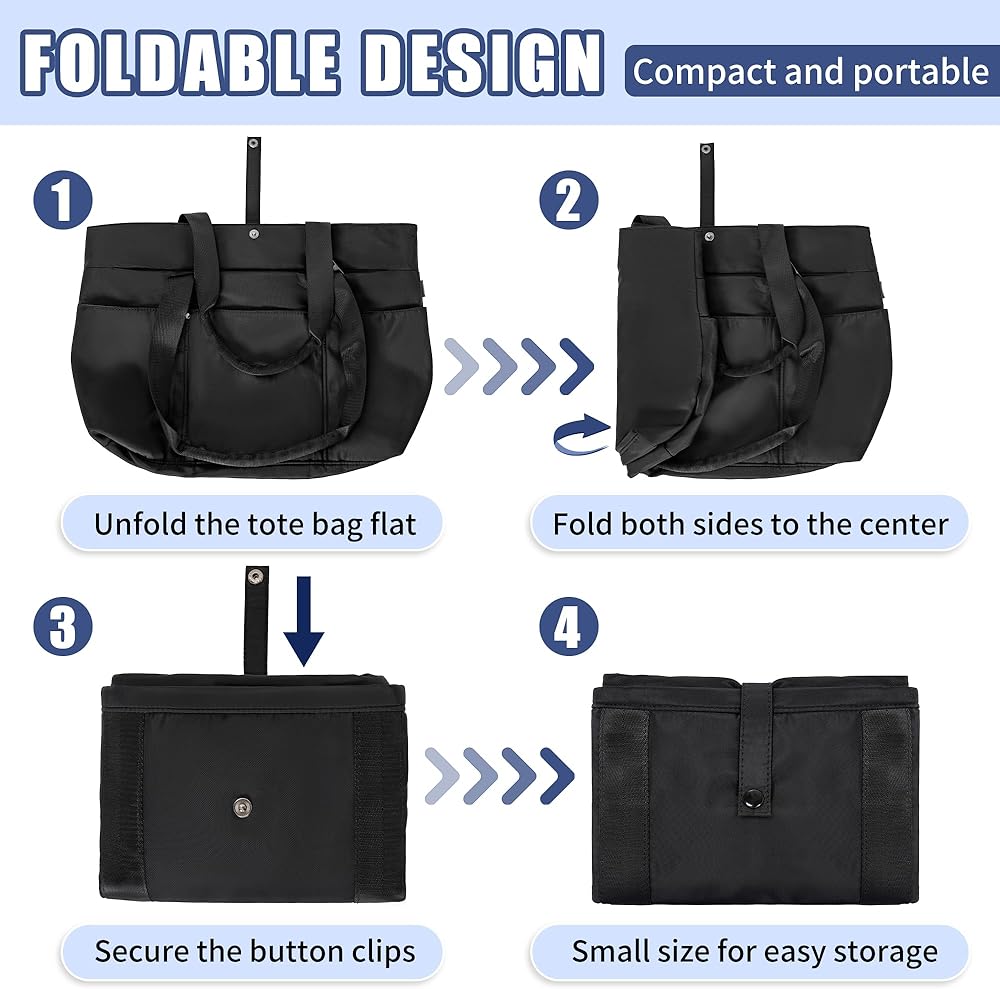 Foldable Tote Bag: Folds up when not in use, folds into the perfect size for travel, lightweight and portable. It can be used as a mini storage bag and can be easily put into backpacks and suitcases to save space