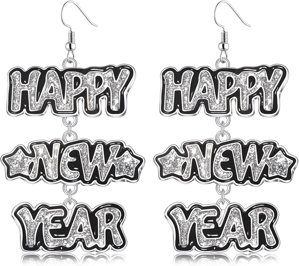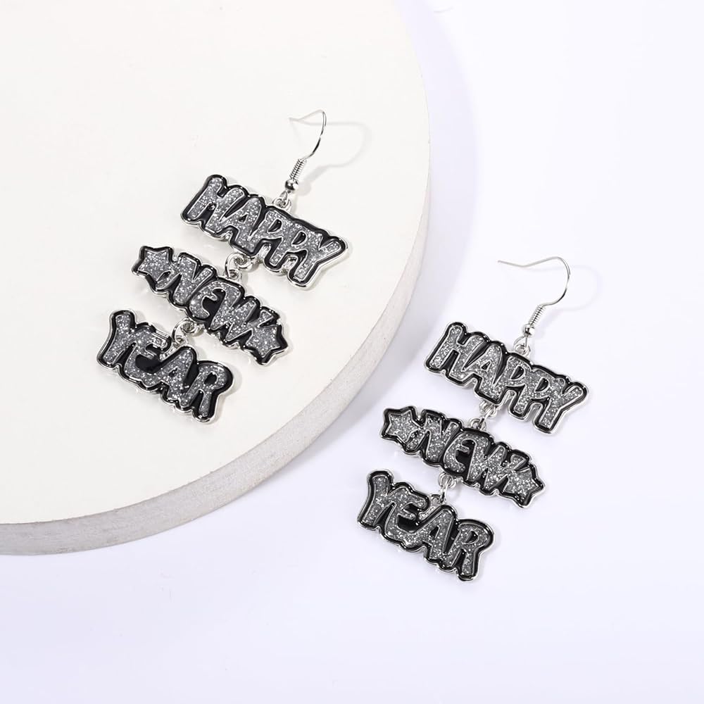 هدية عطلة رأس السنة الجديدة: أكمل ملابسك الأنيقة في رأس السنة الجديدة مع هذه الأقراط الأنيقة للسنة الجديدة! ارتديها مع أي من فساتين الحفلات الخاصة بك والكعب اللامع! ستكون الأقراط المتدلية ذات رسالة السنة الجديدة السعيدة إكسسوارك المفضل الجديد لإضاءة بيئتك في أي مكان، في أي وقت في حفلات رأس السنة. إنها هدية ممتازة لأعياد الميلاد، وعيد المعلم، وعيد الأم، والكريسماس، ورأس السنة الجديدة، وما إلى ذلك. لأصدقائك وعائلتك ومعلميك والأشخاص الذين تحبهم وتعتني بهم.