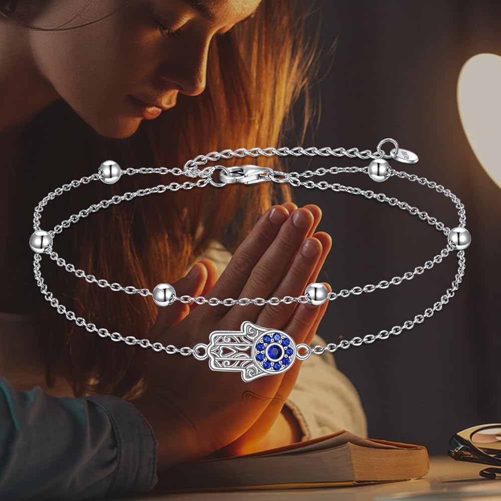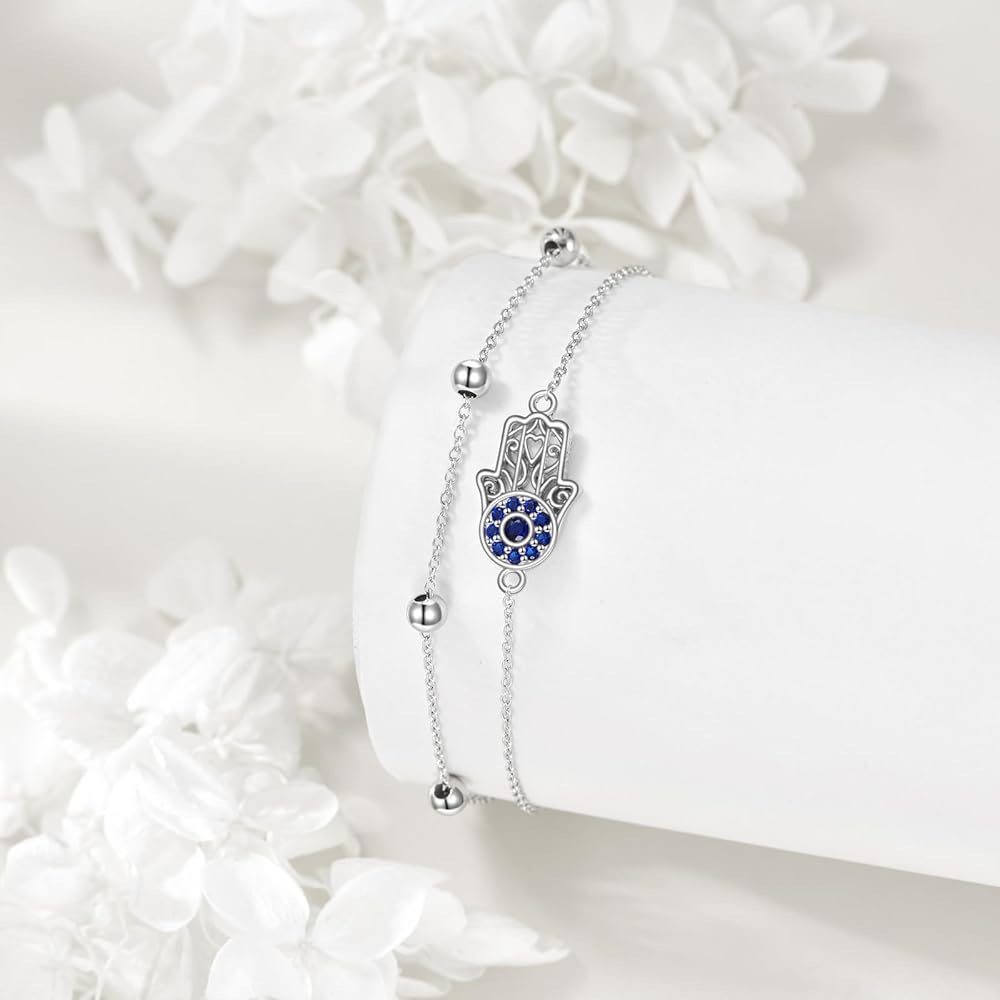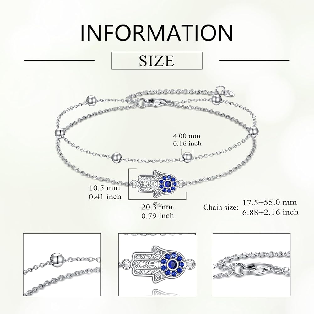 🧿[Material Safe and Reliable] The evil eye bracelet is made of 925 sterling silver with exquisite plating process, inlaid with beautiful zirconia stones, anti-fading and hypoallergenic, lead and nickel free, perfect for daily wear.