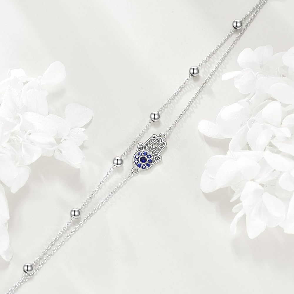 🧿[Evil Eye Bracelet] Sterling Silver Evil Eye Bracelet has a simple and beautiful design, the blue eyes is also known as protection amulet. It keeps its wearer away from the evils of the world and brings happiness, good luck, health and good fortune to its owner.