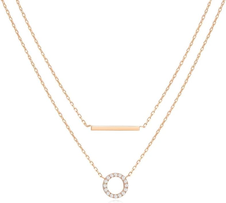 UNIQUE DESIGN: The exquisite layered chocker cubic zirconia necklaces in 14 gold plated layered necklace is set with Bar and Circle, adding a hint of a touch of glamour to any outfit. Perfect for everyday and any evening