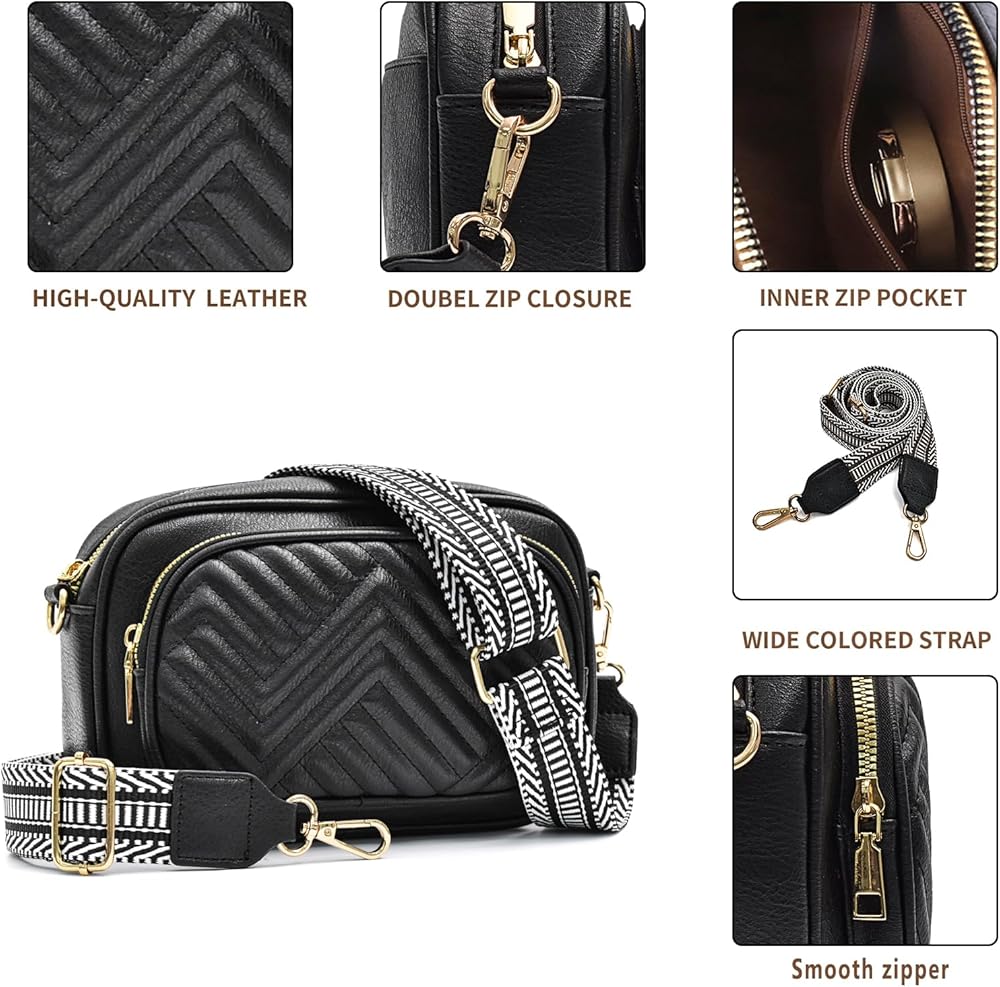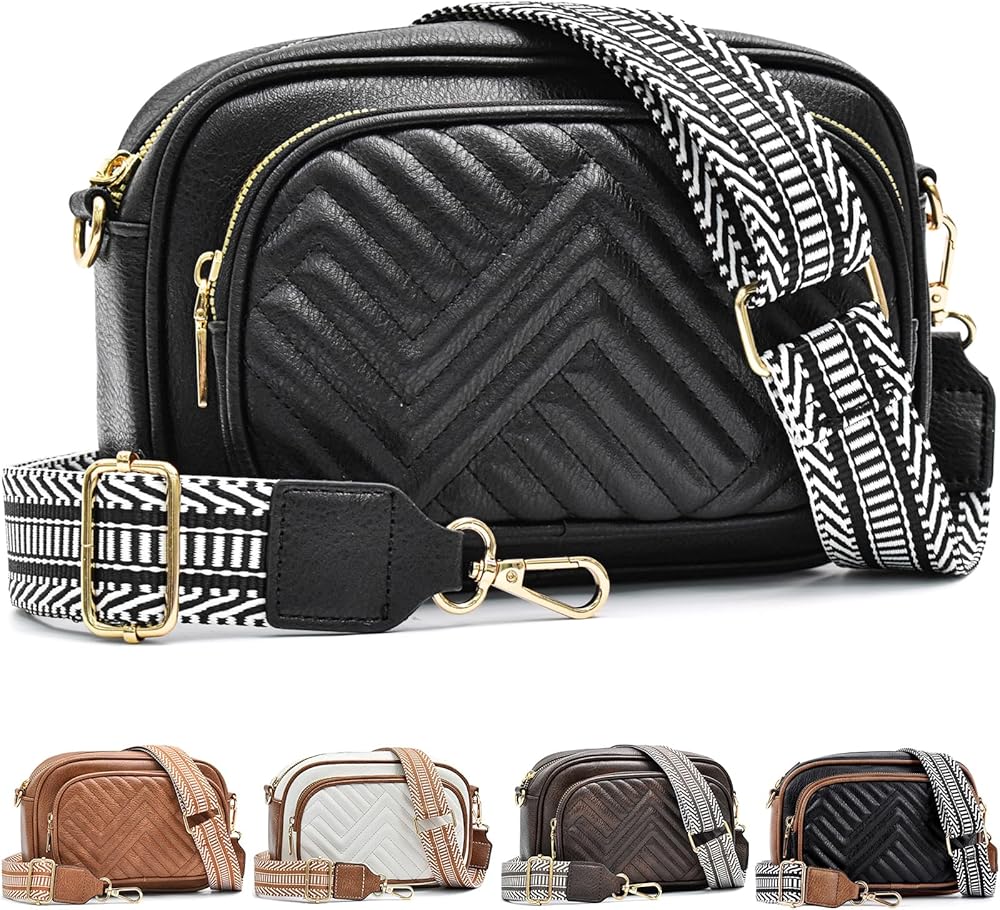 Farcauo Crossbody Bags for Women Quilted Crossbody Purse Women's Crossbody Handbags PU Leather Shoulder Bag with Wide Straps
