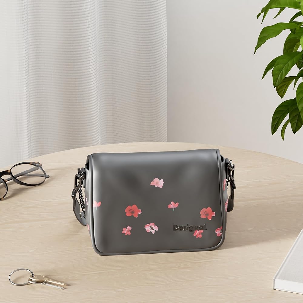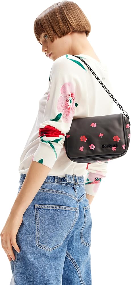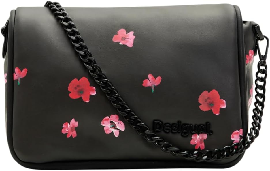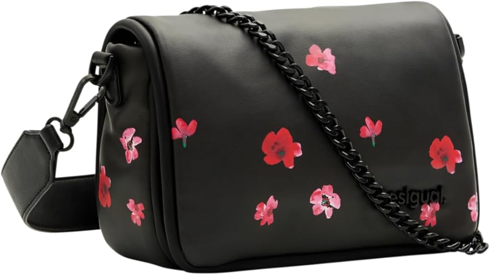 - Two detachable leather-effect straps: a chain for carrying on the shoulder and an adjustable crossbody strap