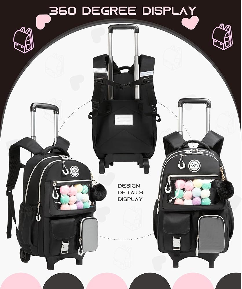 ♥ Rolling Backpack For Girls School: This rolling backpack for girls is lightweight, durable, and unique. The unique pulley design makes it easier for children to use.