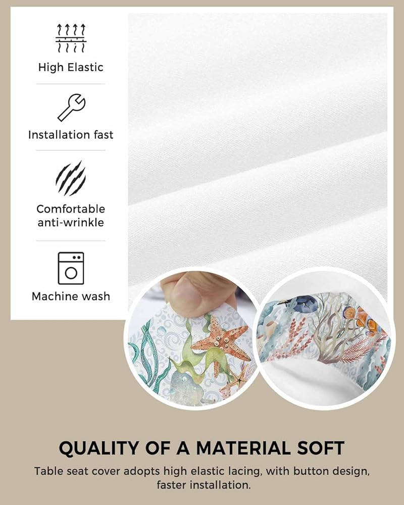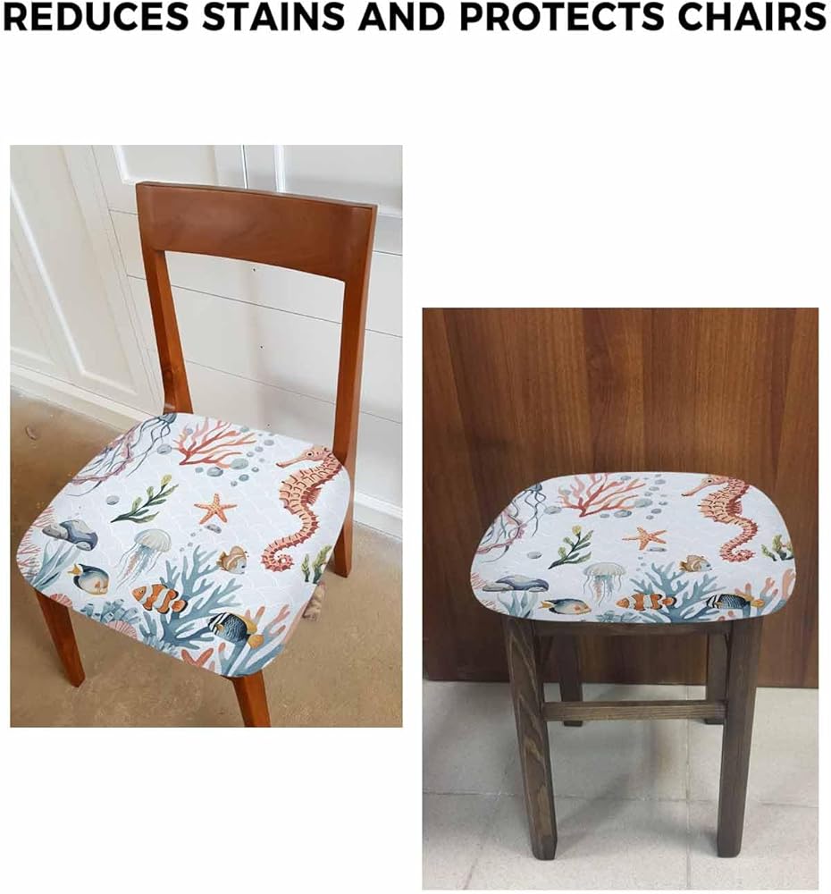 Coastal Chair Seat Covers for Dining Room Stretch Chair Seat Covers Set of 6,Chair Seat Protector Cushion Slipcovers for Kitchen Office Jellyfish Seahorse Shells Corals Starfish Seaweed Watercolor