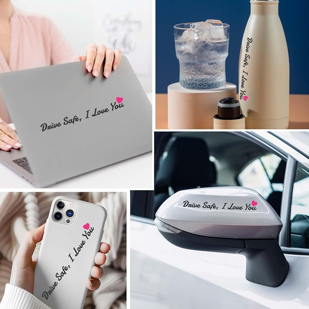 【Widely Used】These love you stickers are not limited to rearview mirrors. Car rearview mirror stickers can also be affixed to rearview mirrors, sun visors, car windows, or other smooth surfaces such as water bottles, notebooks, tablets, mobile phones, etc. The "I love you drive safely" sign can warmly remind your loved ones that road safety comes first. They are a beautiful reminder of your safety and value.