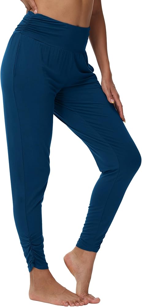 Stylish Design: WiWi Women's pants have a high waist, The yoga pants with delicate pleats on the sides of the cuffs and pockets to store personal items.