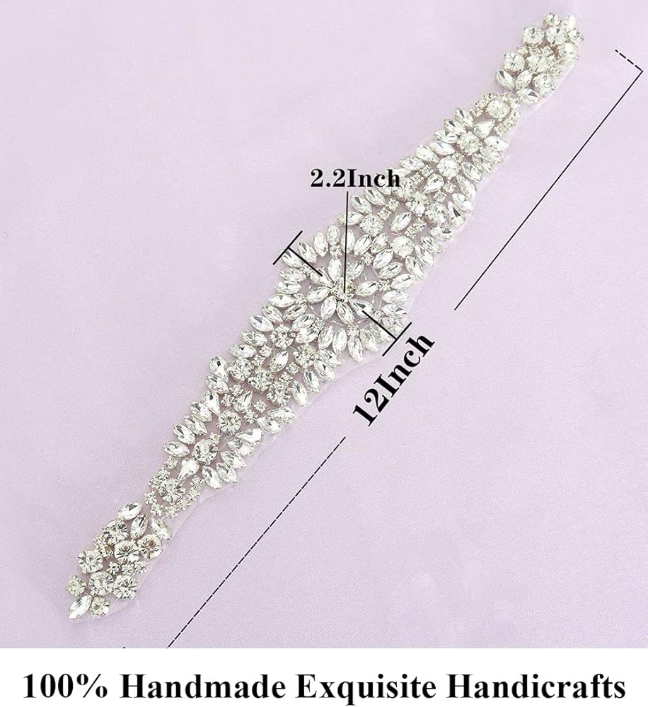 √ Sizes - Approx 13.6x2inches(34cmx5cm). Pls kindly check if the applique size can cover your waist.Great for making a nice addition to bridal wedding gown belts or straps or rhinestone appliques for dresses.