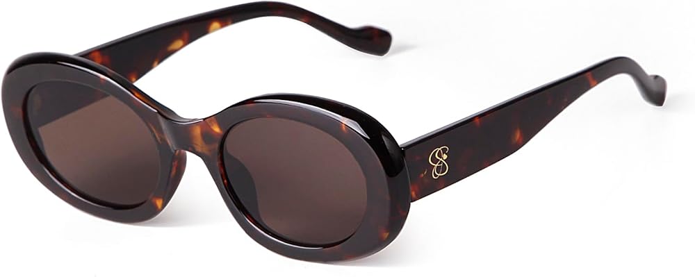 RETRO-INSPIRED OVAL STYLE If you are looking for fashionable retro sunglasses that fit your small face, this Laurinny tortoise oval sunglasses is a good choice! This trendy womens sunglasses features a shiny and thick streamlined silhouette. The contemporary yet vintage style is enhanced by the solid lenses and a gold patterns on the temples.