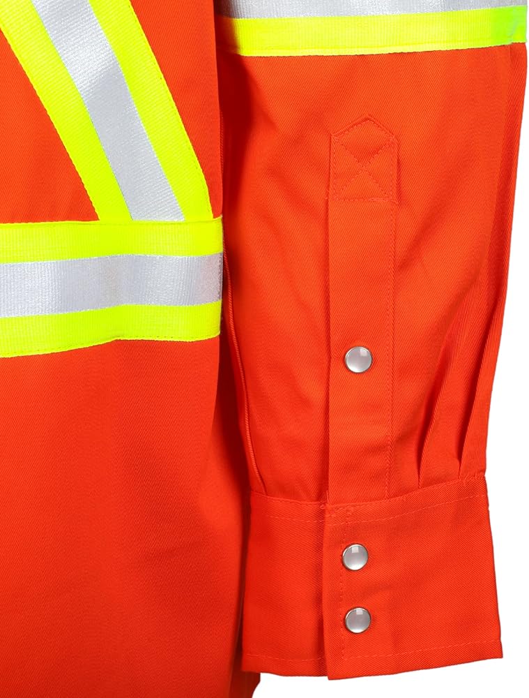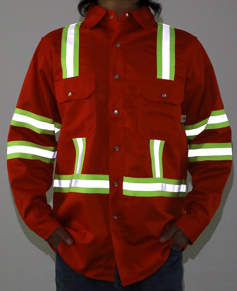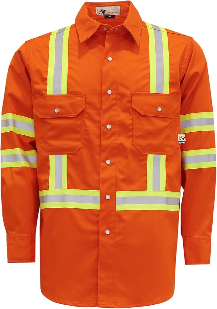 Our clothing is made from high-quality 7.5OZ Cotton Twill that is treated with flame retardant properties,features FR buttons and FR sewing threads.Stay visible and safe with 2" FR high visibility reflective yellow tape,along with quality reflective silver paint