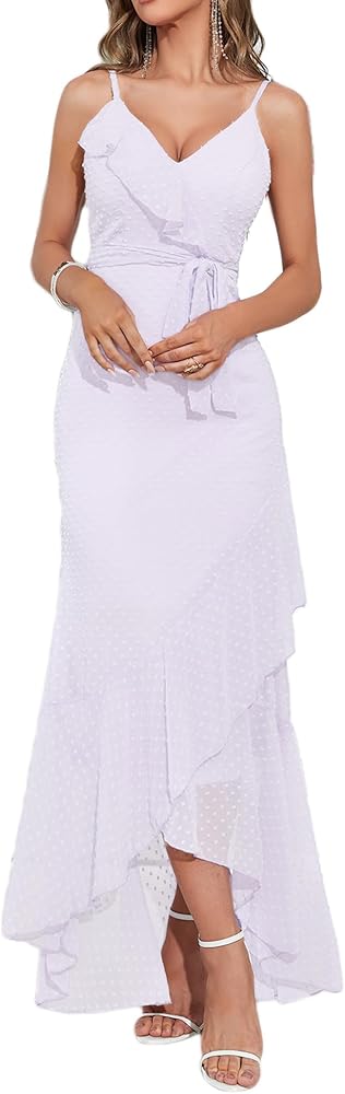 Feature:It features a spaghetti strap,v-neck with ruffle cut and is balanced by the super flattering maxi length.The holiday fishtail long dress has a sweet bow-knot on the waist,fishtail and has a bodycon fit that hugs your curves.