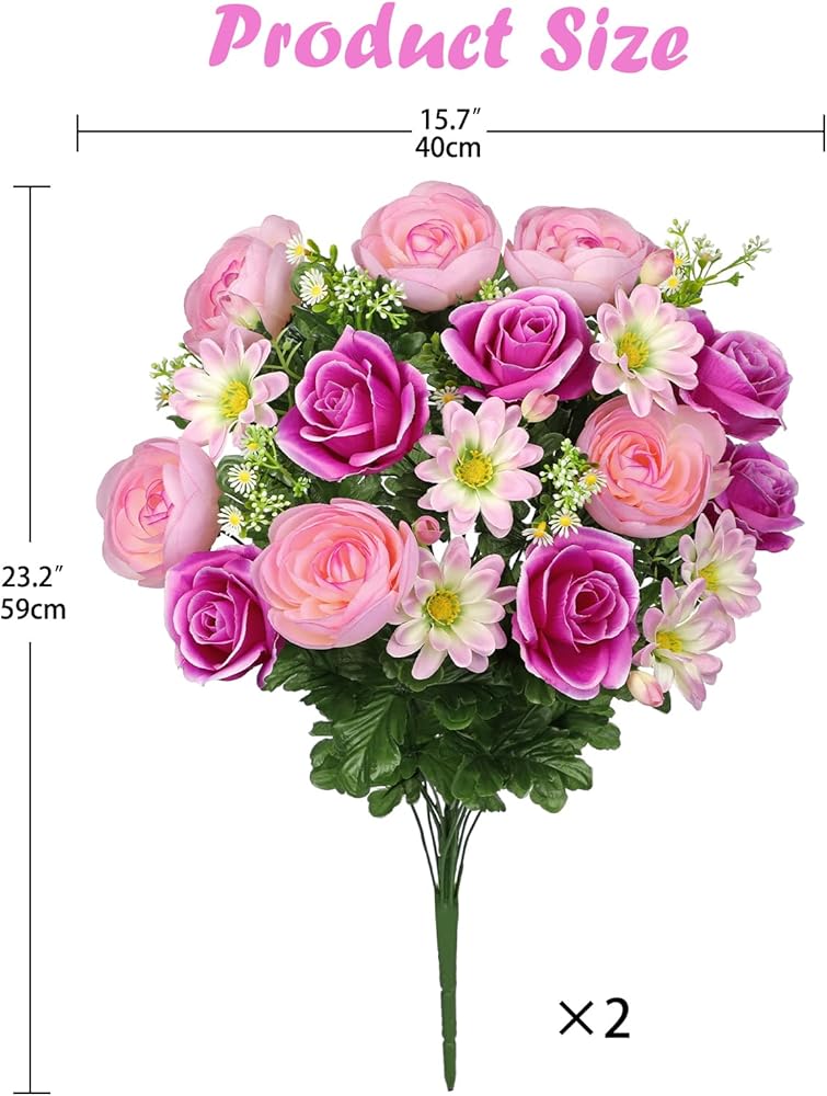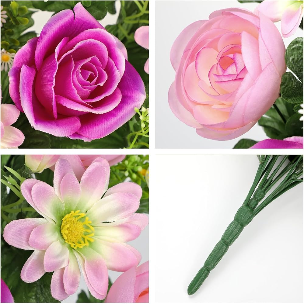 🌷✨【Beautiful Graveyard Flower Sets】The package comes with 2 pieces of 11.4 x 15.7 inches cemetery flowers for graves, 24 flower heads in each bunch, this artificial flowers for cemetery is the perfect heartfelt tribute. It will grab attention and allow for a perfect presentation, providing solace and comfort in tender memories.