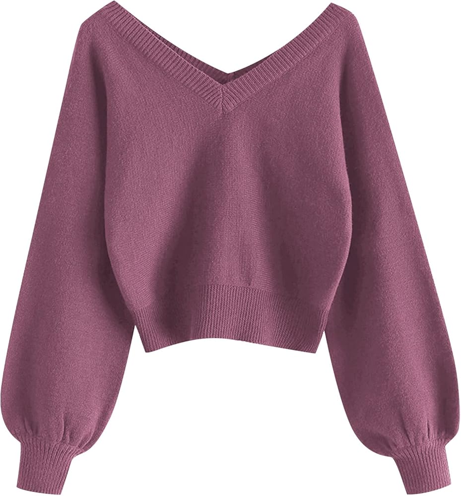 Unique Design: V neck sweater women featuring a double V design, long raglan sleeves, lantern sleeve, short length and ribbed trims, we love this womens pullover sweaters pair with jeans and a pair of block heels.