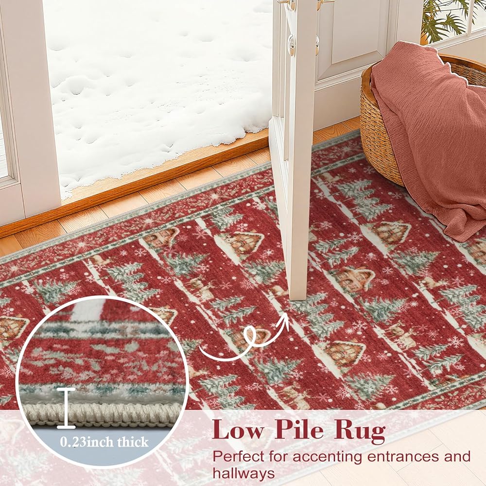 Soft & Low Pile Rugs: LEEVAN Winter Holiday Area Rug is made of ultra-dense machine-woven faux wool that is soft to the touch and durable enough to be warm and comfortable to walk barefoot. The low-pile design fits into any space and can be placed in doorways, under doors, and over furniture without blocking the way.