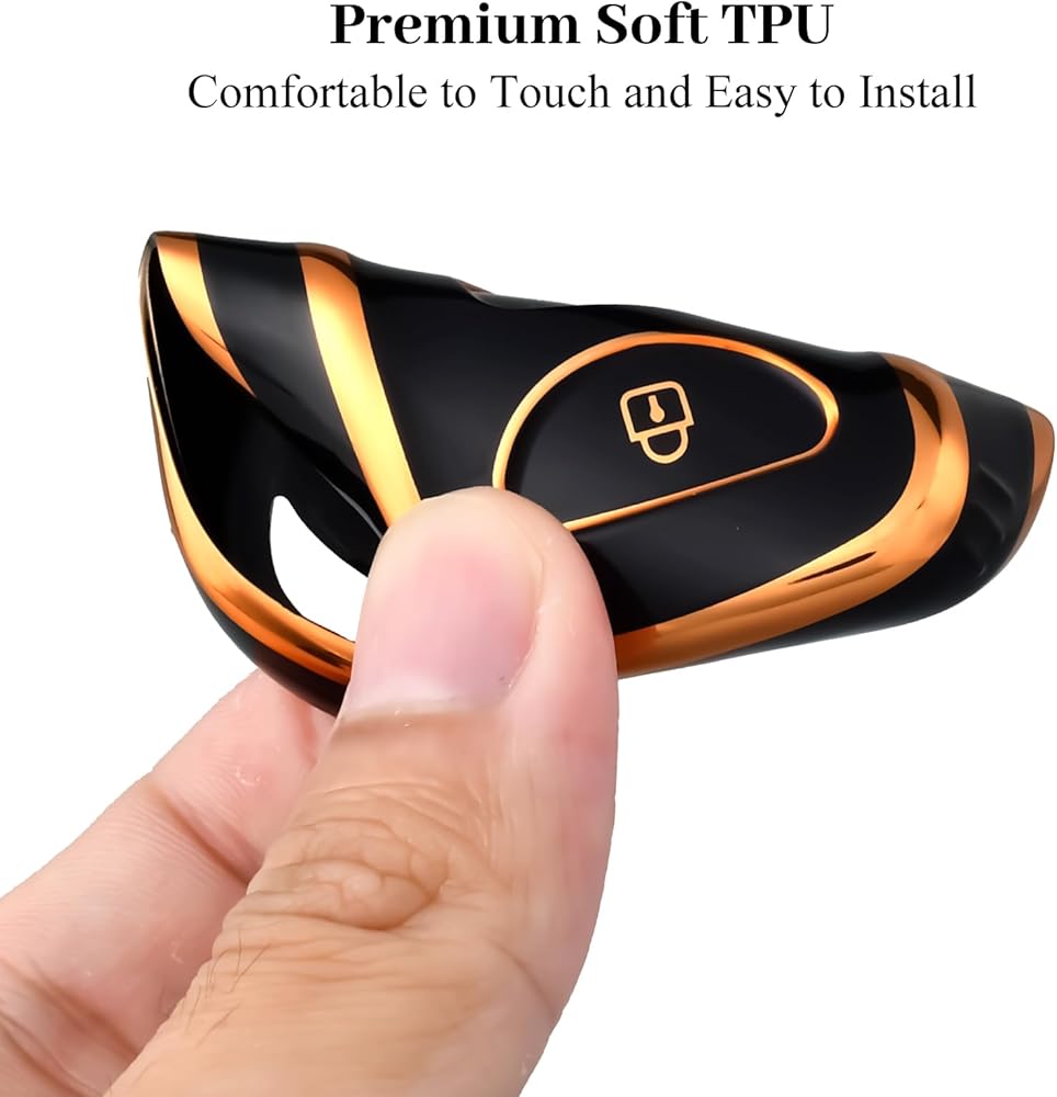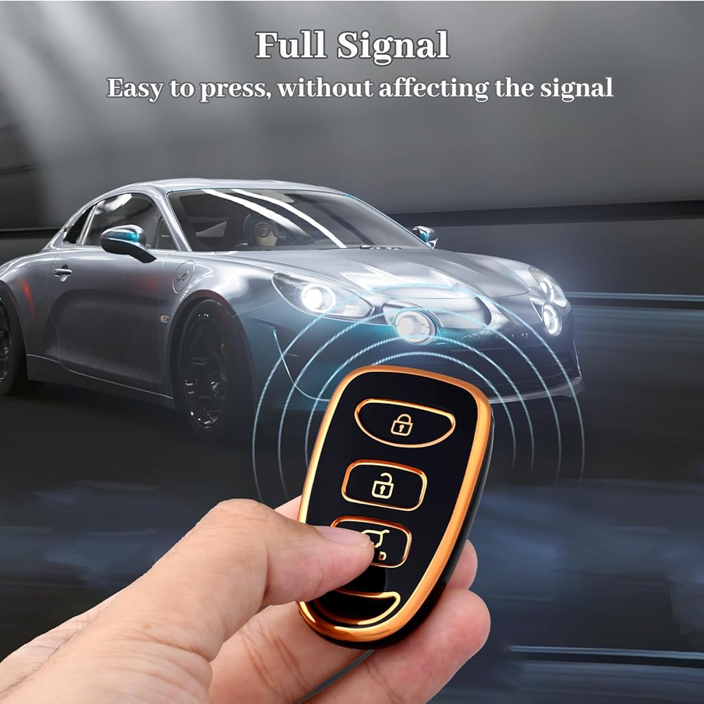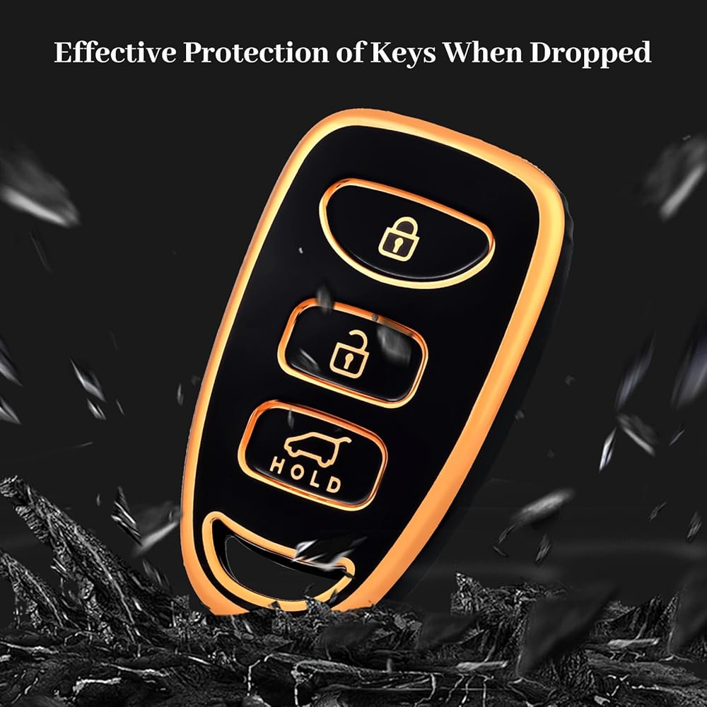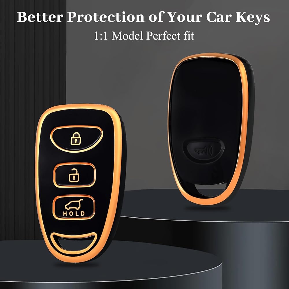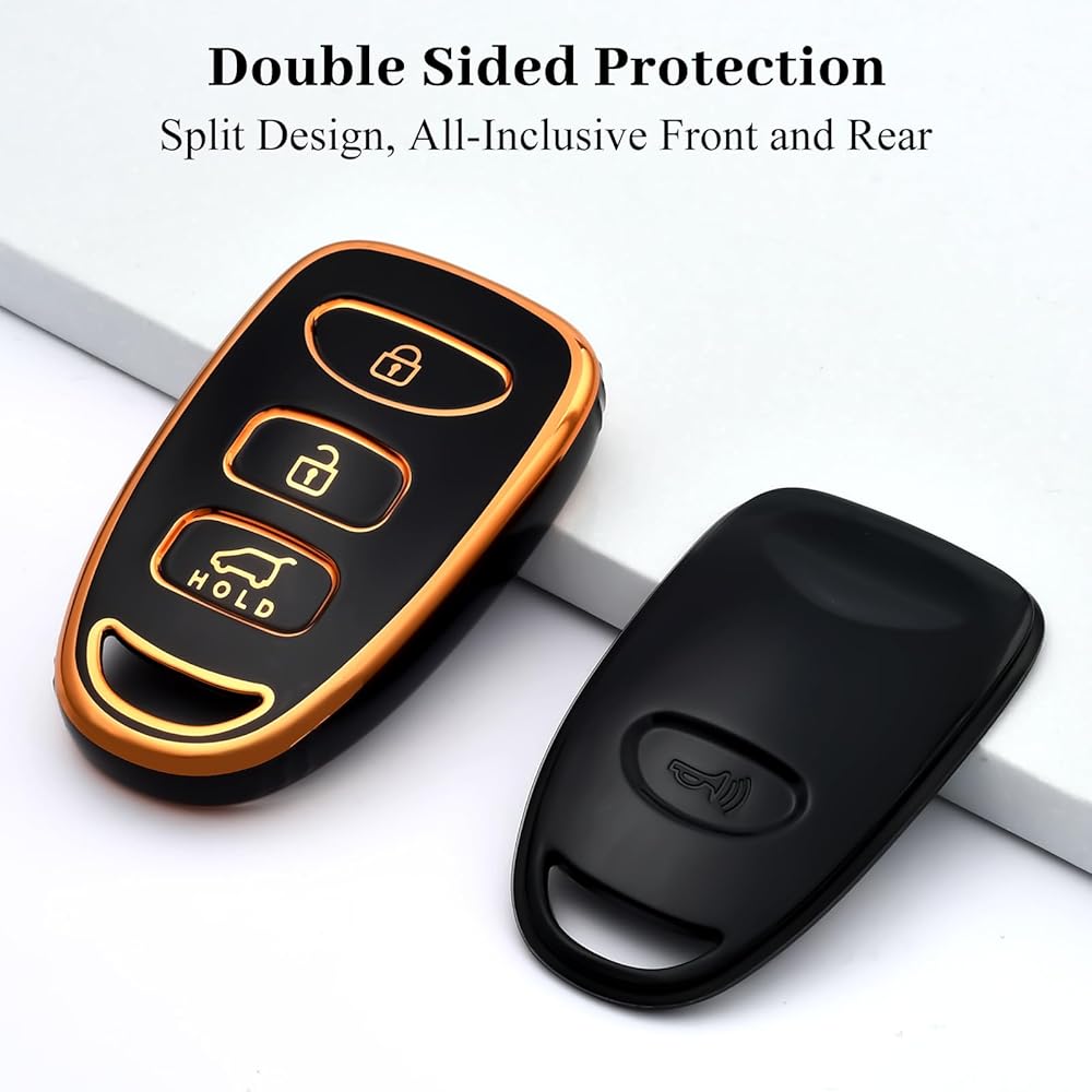 for Hyundai Key Fob Cover, Soft TPU Protection Key Fob Case Fit for Hyundai Elantra Accent Genesis Sonata Kia Forte Optima Sorento Rondo Spectra Car Key Accessories (Gold Black)