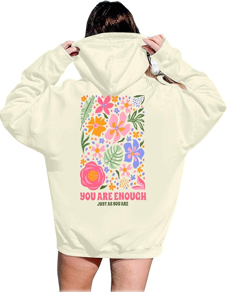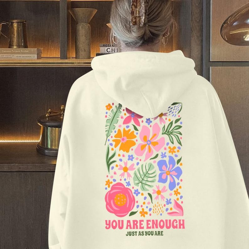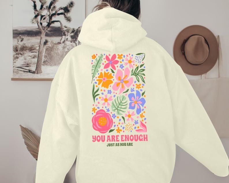 FEATURES: Graphic hoodies women, you are enough sweatshirts, dear Person behind me shirt, oversized hoodies, aesthetic t Shirt, motivation pullover top.