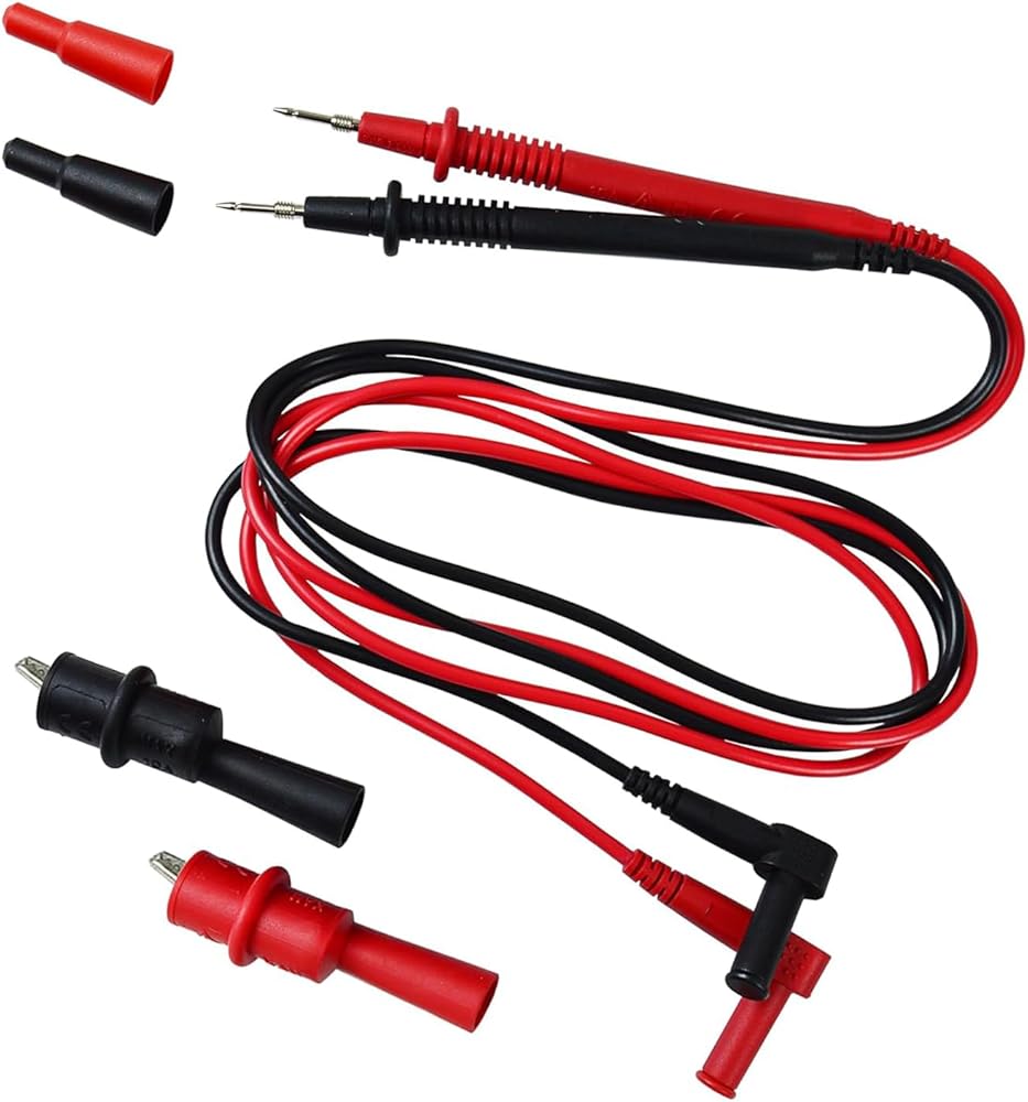 ►SECURE AND DURABLE: Two PVC insulation lead wires with two threaded probe tips Constructed with flexible PVC/PA material that is double-layered and -insulated.The silicone used is non-toxic,environment friendly .Using high quality materials ensures that the test leads are durable,flexible as well as having properties like freeze resistance and heat tolerance.