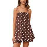 Versatile Style: Women summer striped print lounge set, y2k peplum shirt shorts set, cute sleeveless babydoll camisole, straight neckline, thin adjustable spaghetti straps, smocked at bust, A-line shape with flowy pleated ruffle hem, side pockets for hands, backless. Wide leg boxer shorts with wide elastic waistband, high rise, striped baggy shorts, women loose fit 2 piece pj sets.